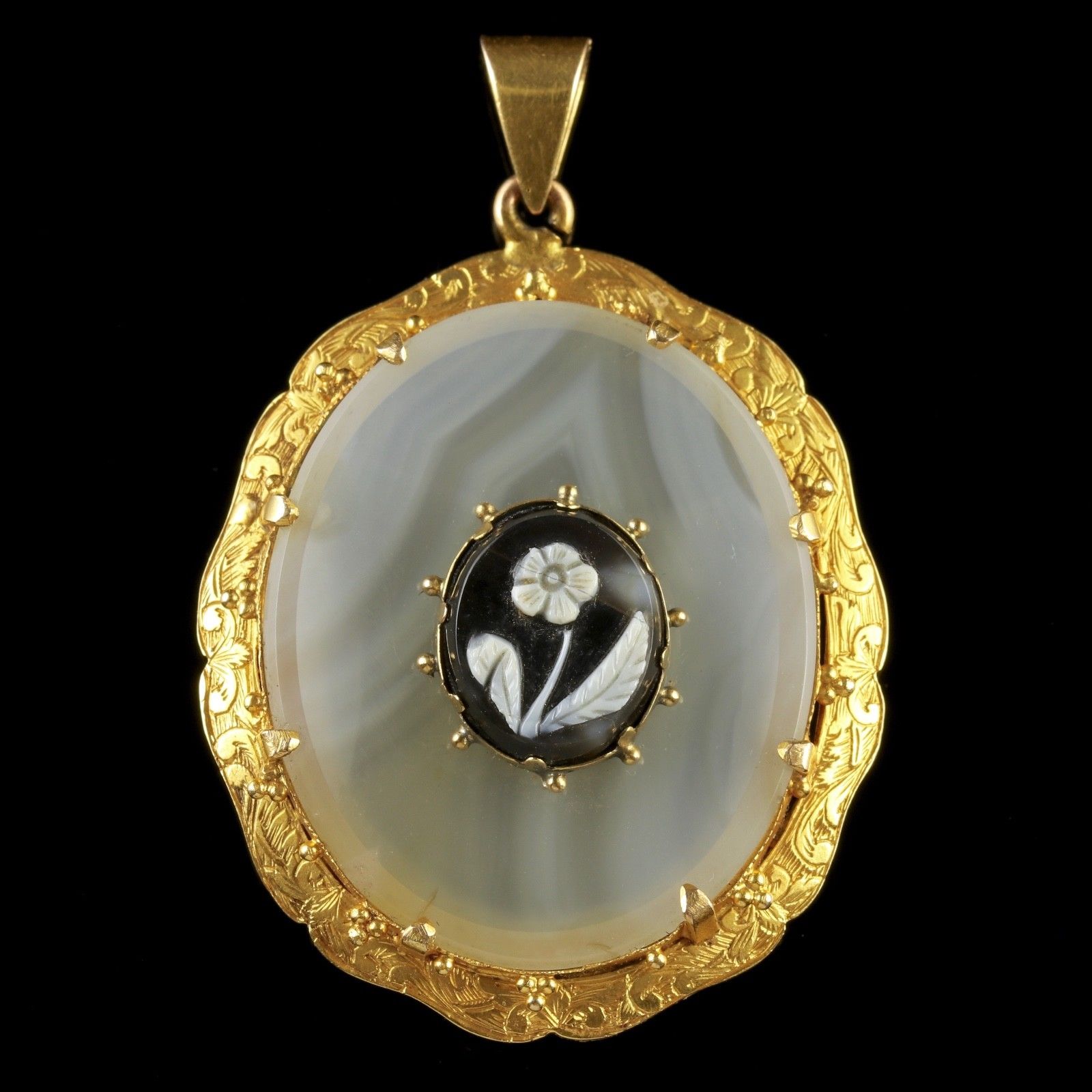 Antique Victorian Hardstone Cameo Pendant 15ct Gold c.1870