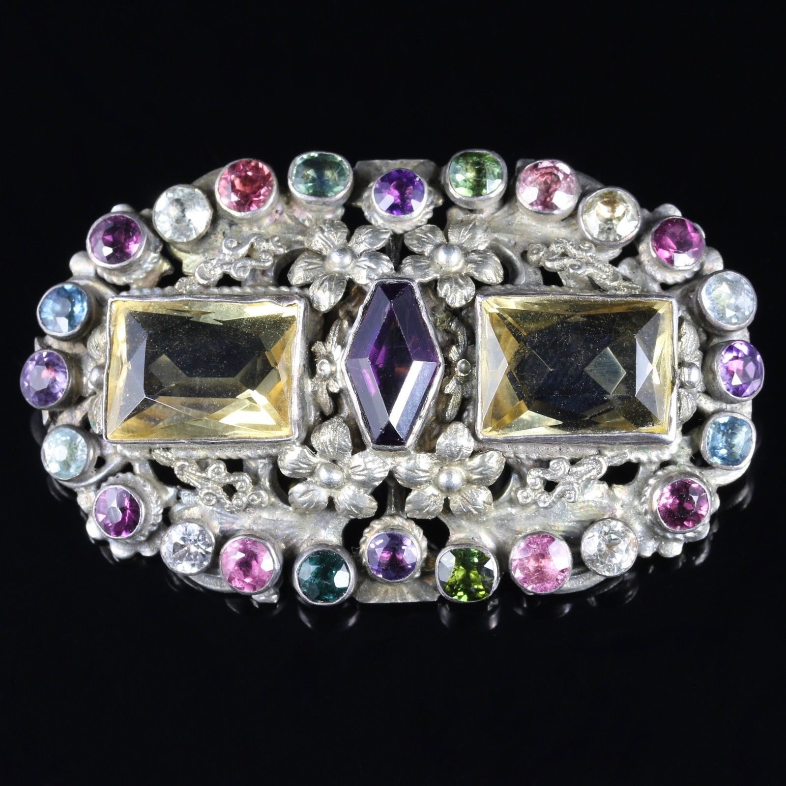 Antique Victorian Harlequin Gemstone Brooch c.1860