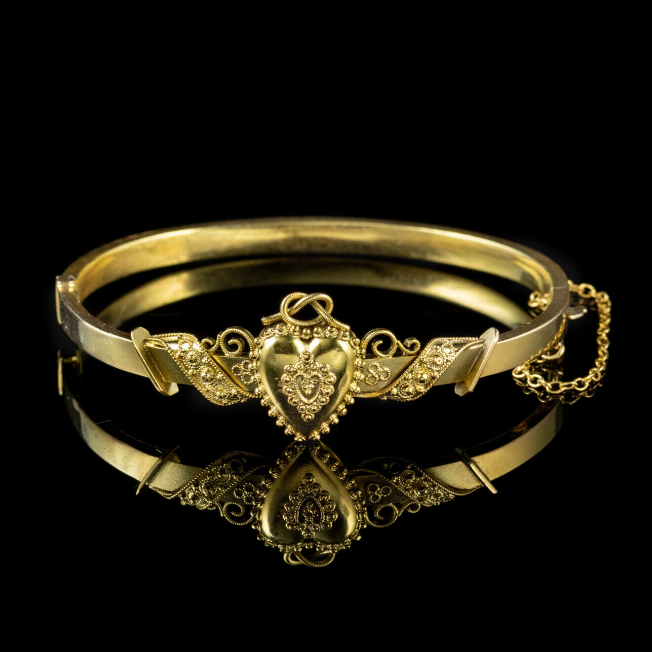 Antique Victorian Heart Bangle 15ct Gold c.1880