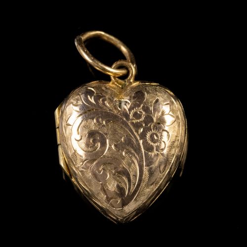 Antique Victorian Heart Forget Me Not Locket 9ct Gold c.1900