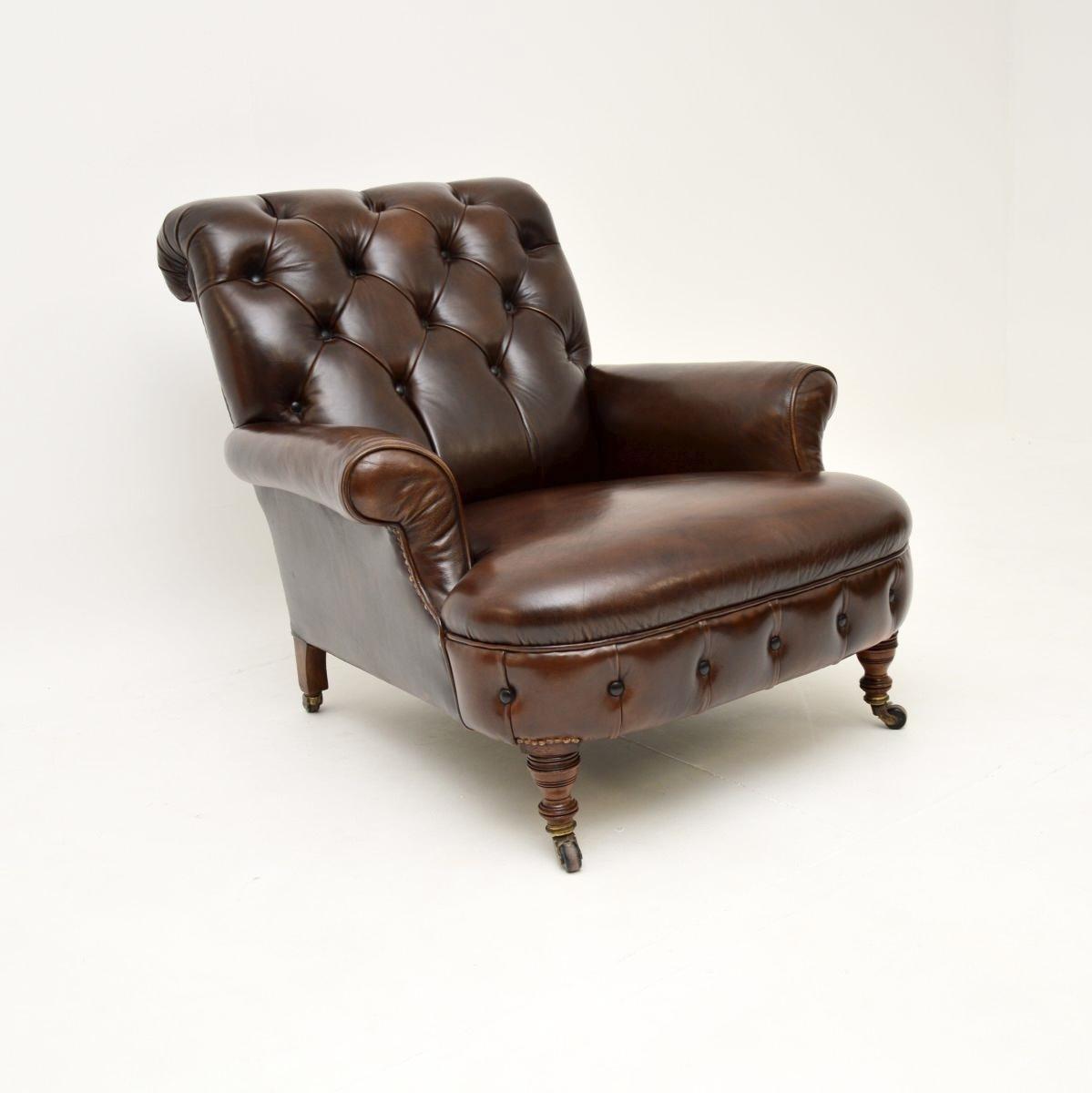 Antique Victorian Howard Style Leather Armchair