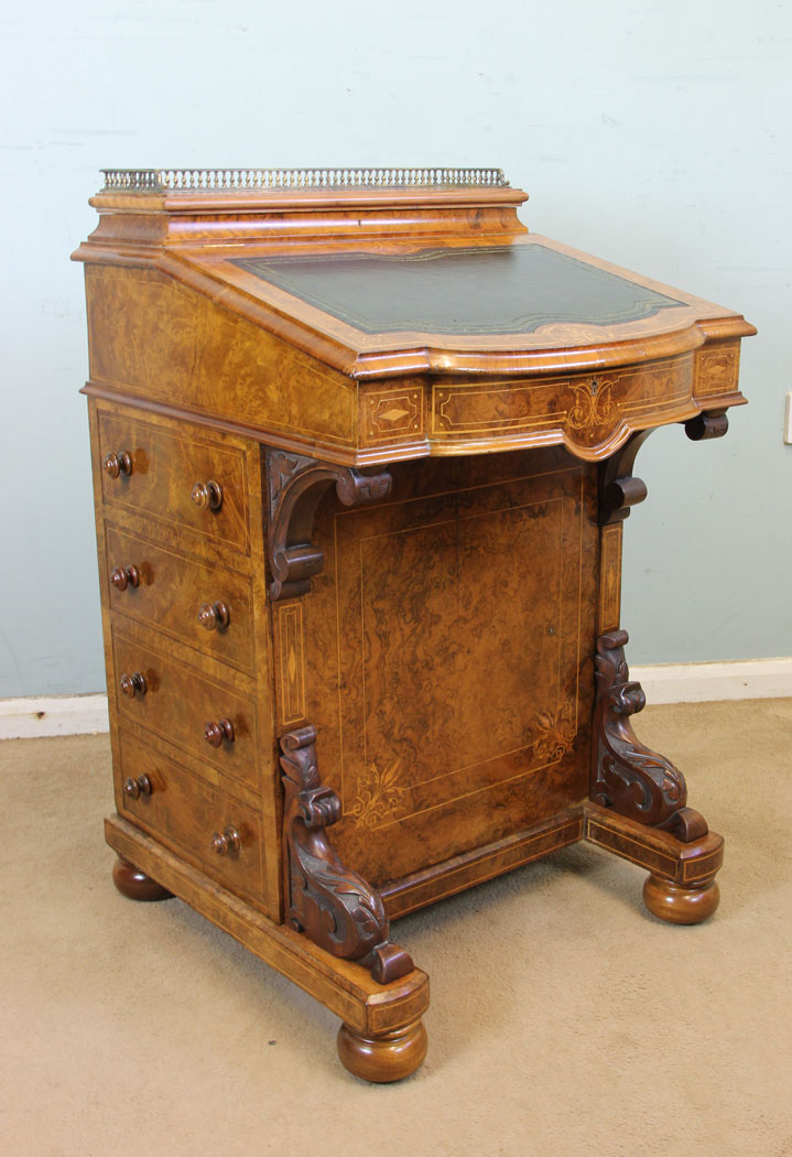 Antique Victorian Inlaid Burr Walnut Davenport Writing Desk