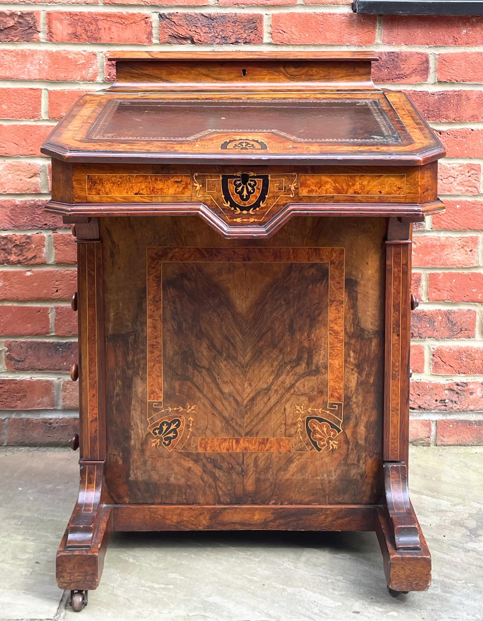 Antique Victorian Inlaid Burr Walnut Davenport Writing Desk