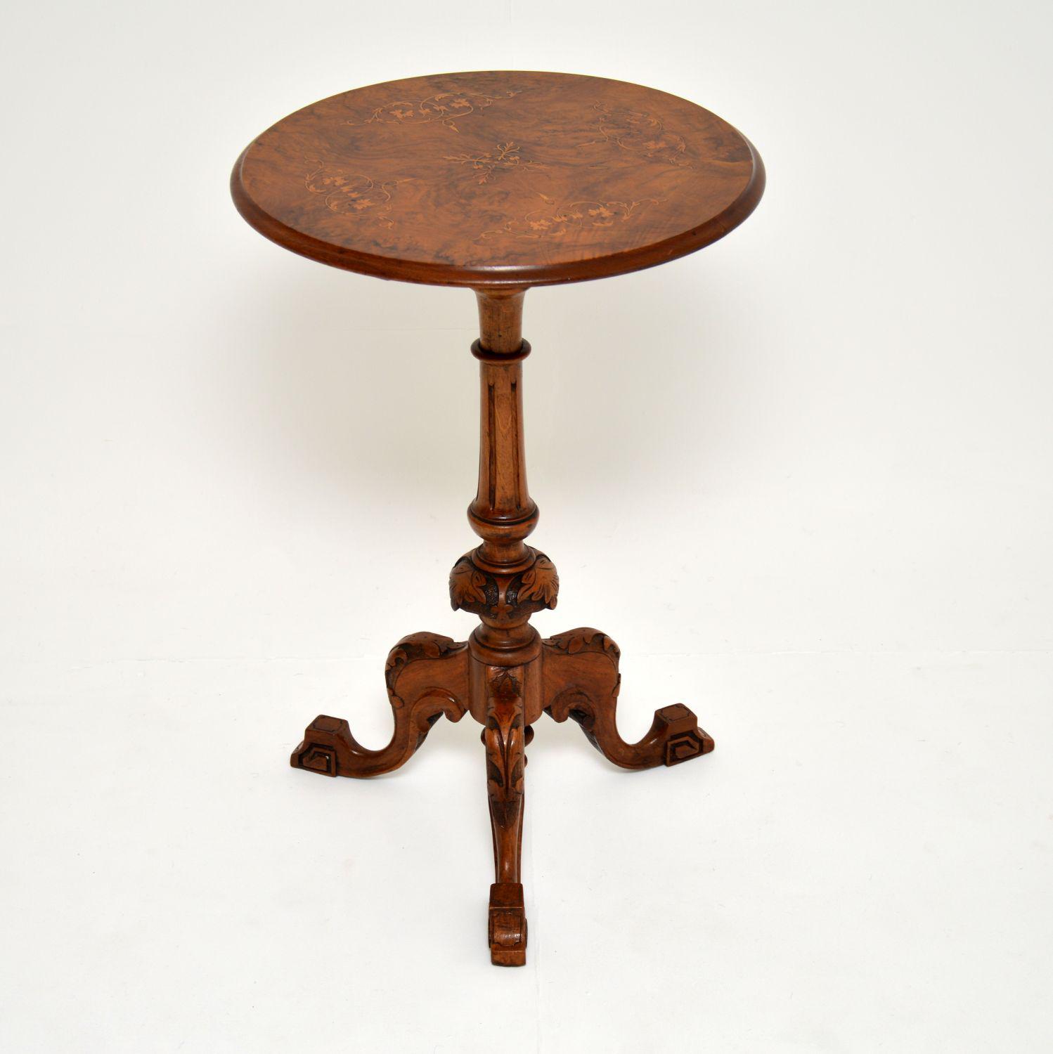 Antique Victorian Inlaid Burr Walnut Side Table (1 of 8)