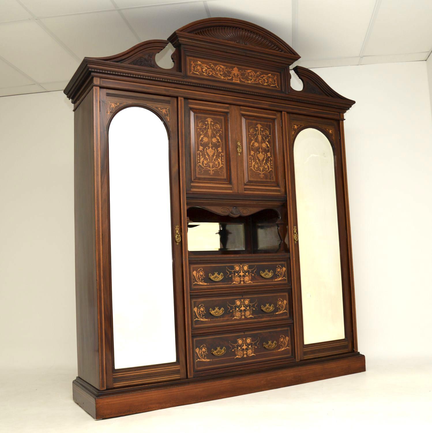 Antique Victorian Inlaid Mahogany Wardrobe by James Shoolbred