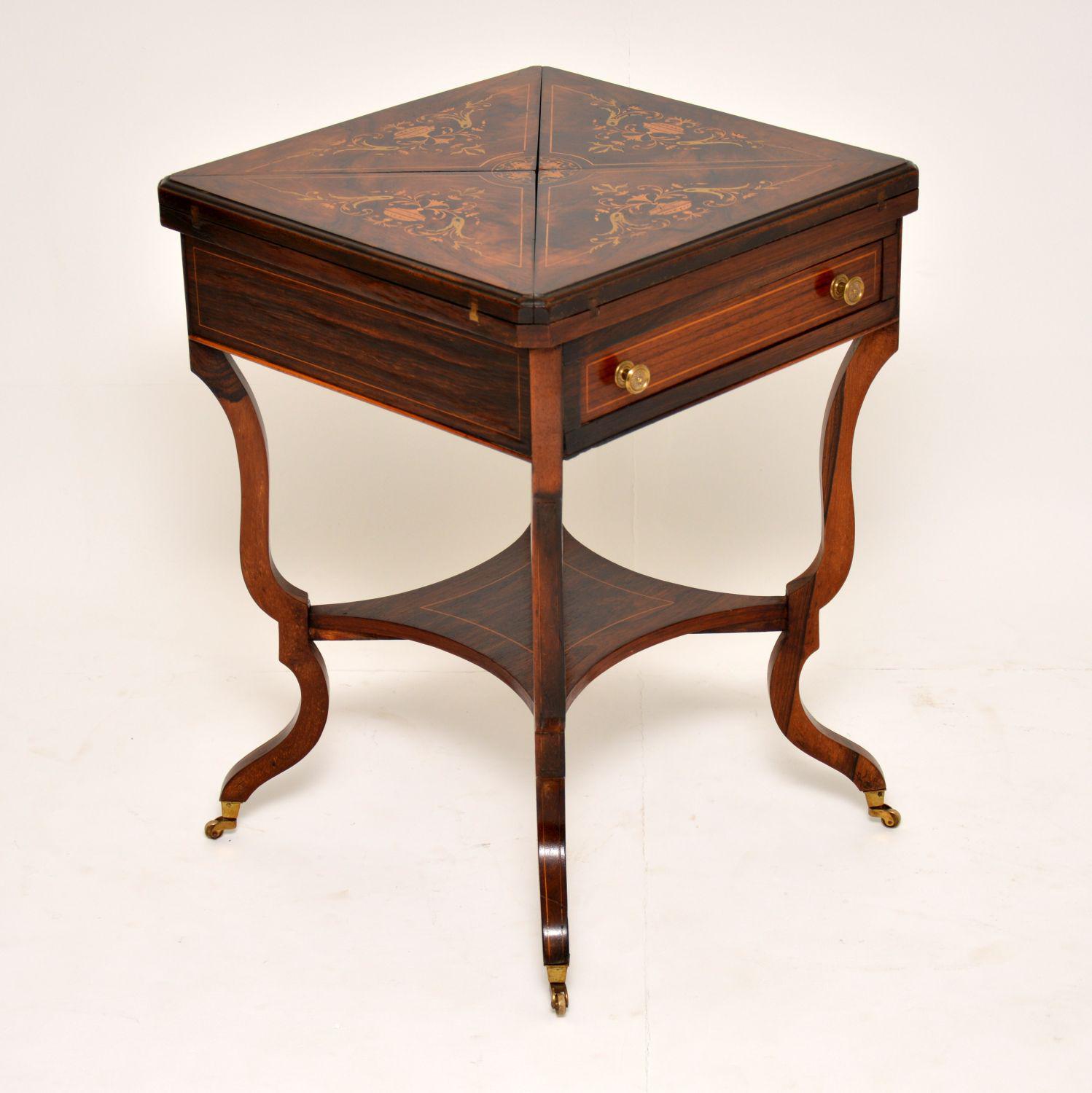 Antique Victorian Inlaid Rosewood Envelope Card Table