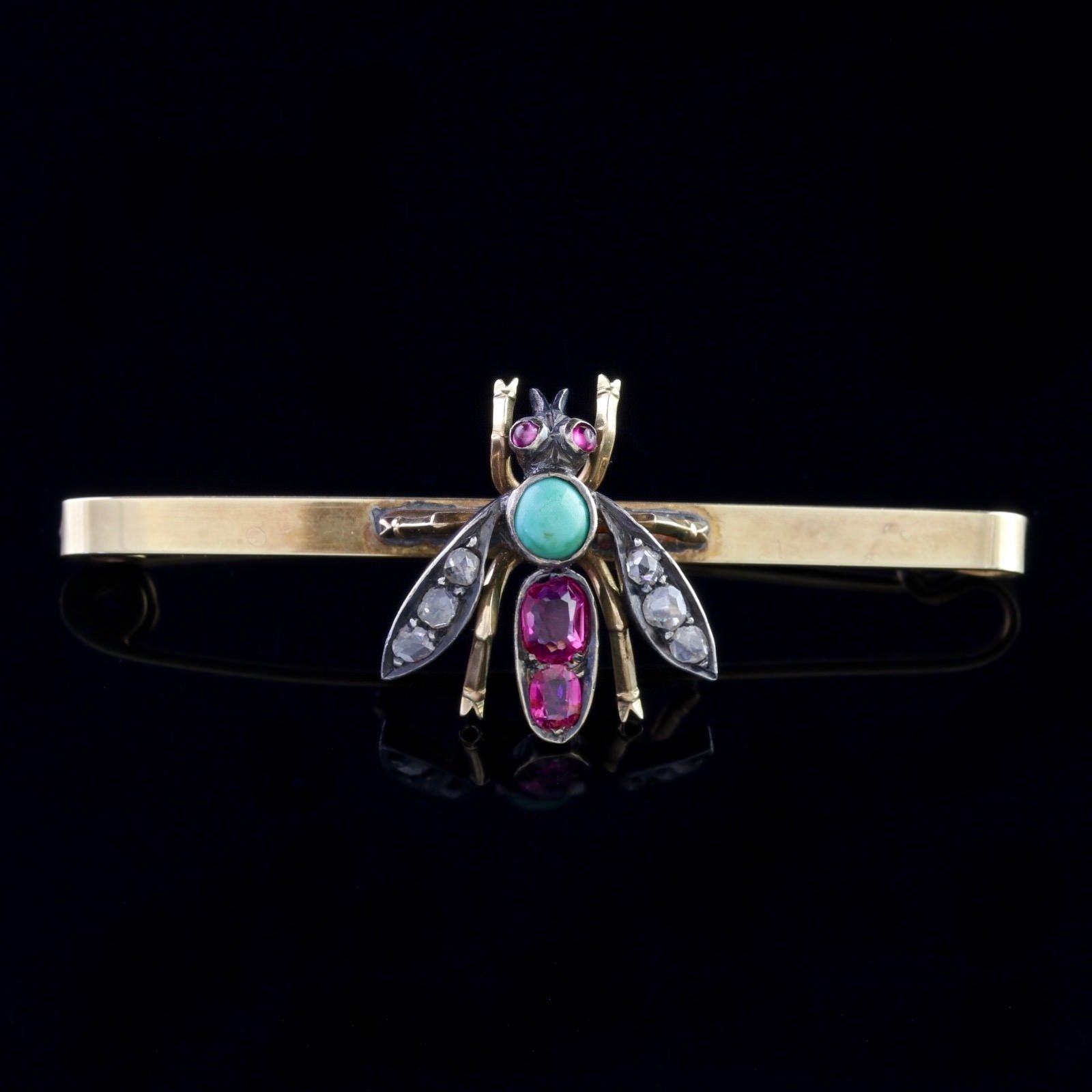 Antique Victorian Insect Brooch Diamond Ruby Turquoise c.1900