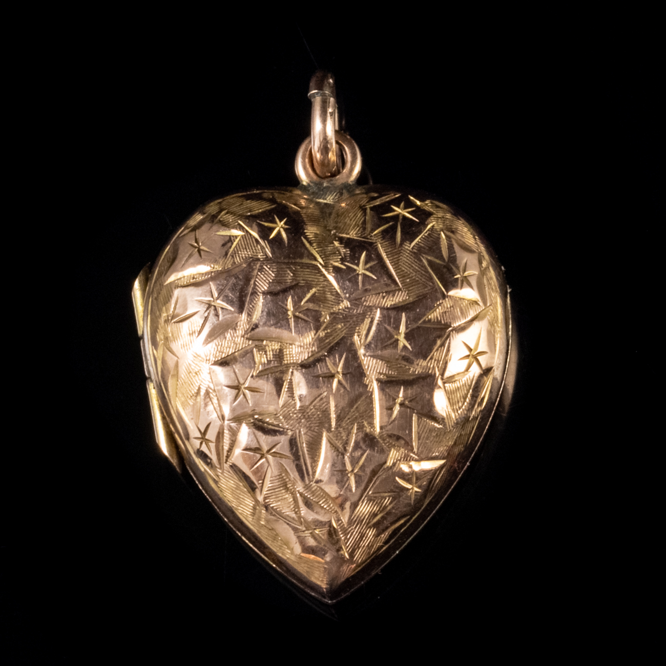 Antique Victorian Ivy Heart Locket 9ct Gold Dated Birmingham 1881