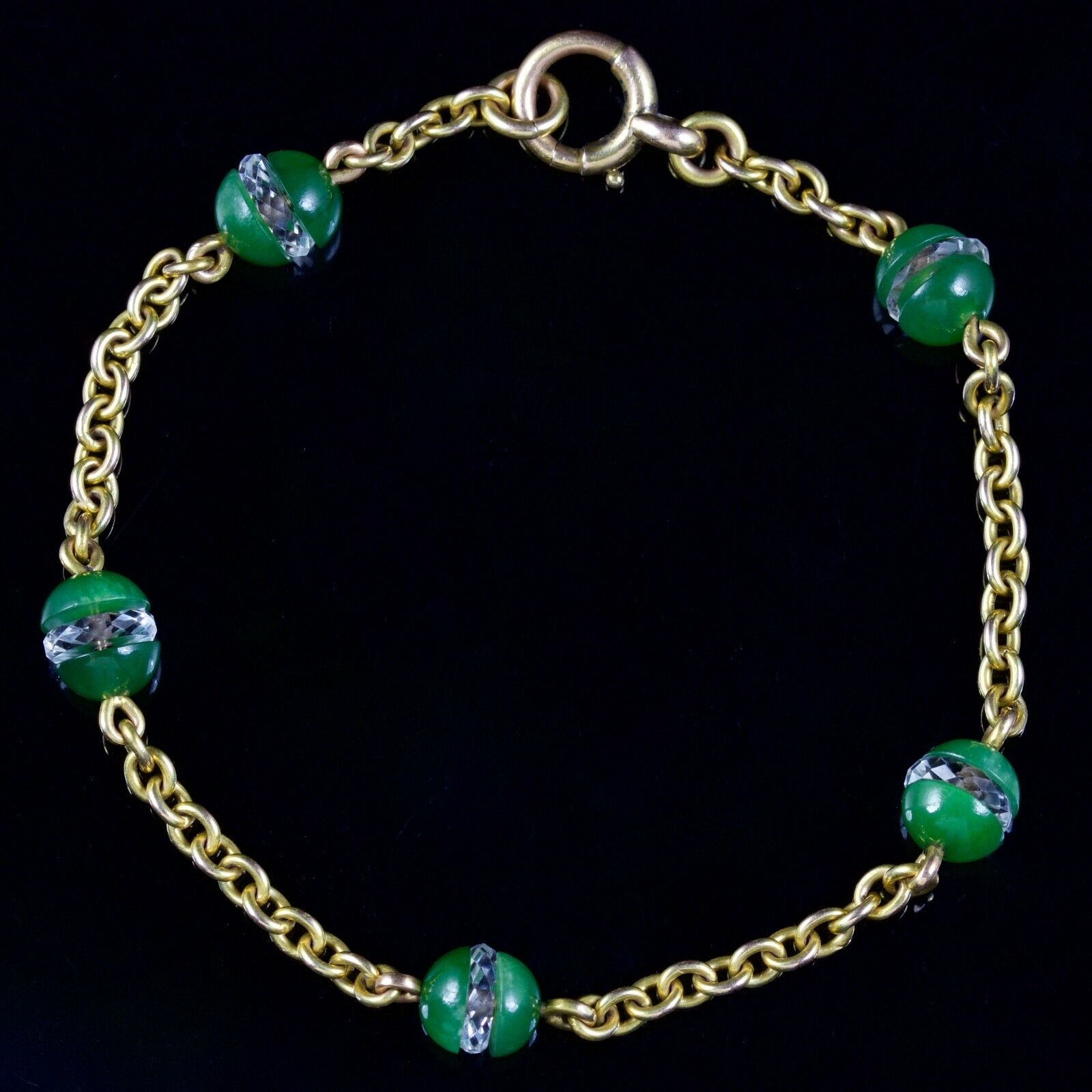 Antique Victorian Jade Crystal Bracelet 15ct Gold c.1880