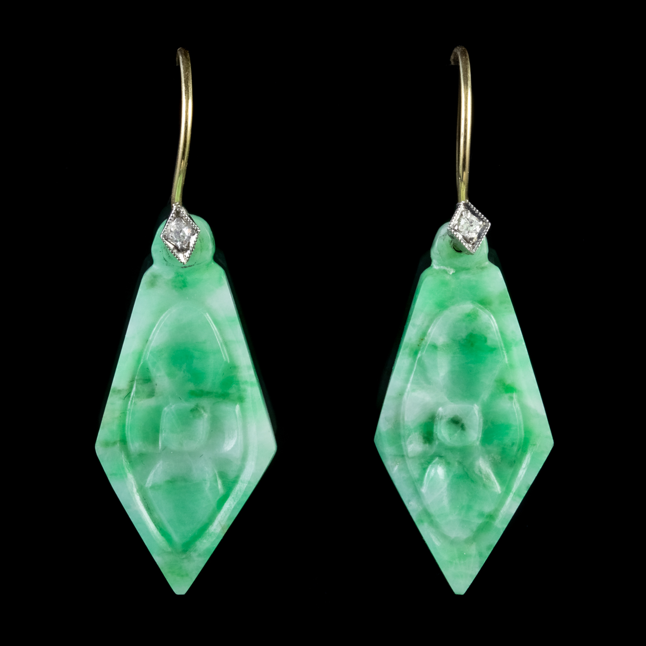 Antique Victorian Jade Diamond Drop Earrings 18ct Gold c.1900