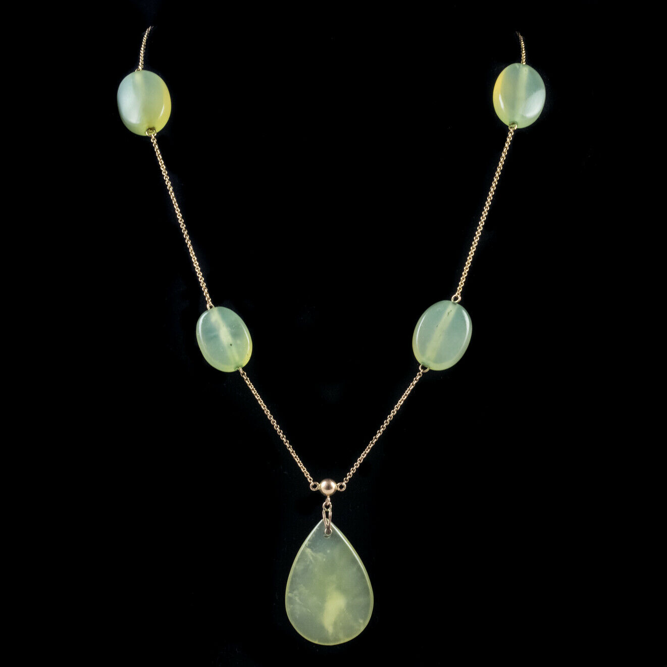 Antique Victorian Jade Pendant Necklace 9ct Gold Sautoir Chain c.1900
