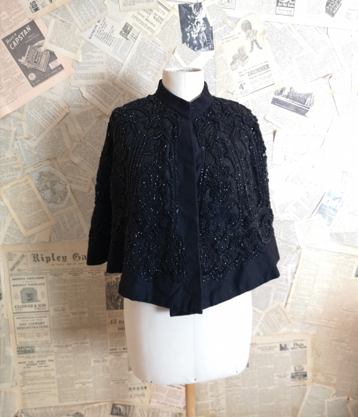 Antique Victorian Jet Beaded Mourning Cape