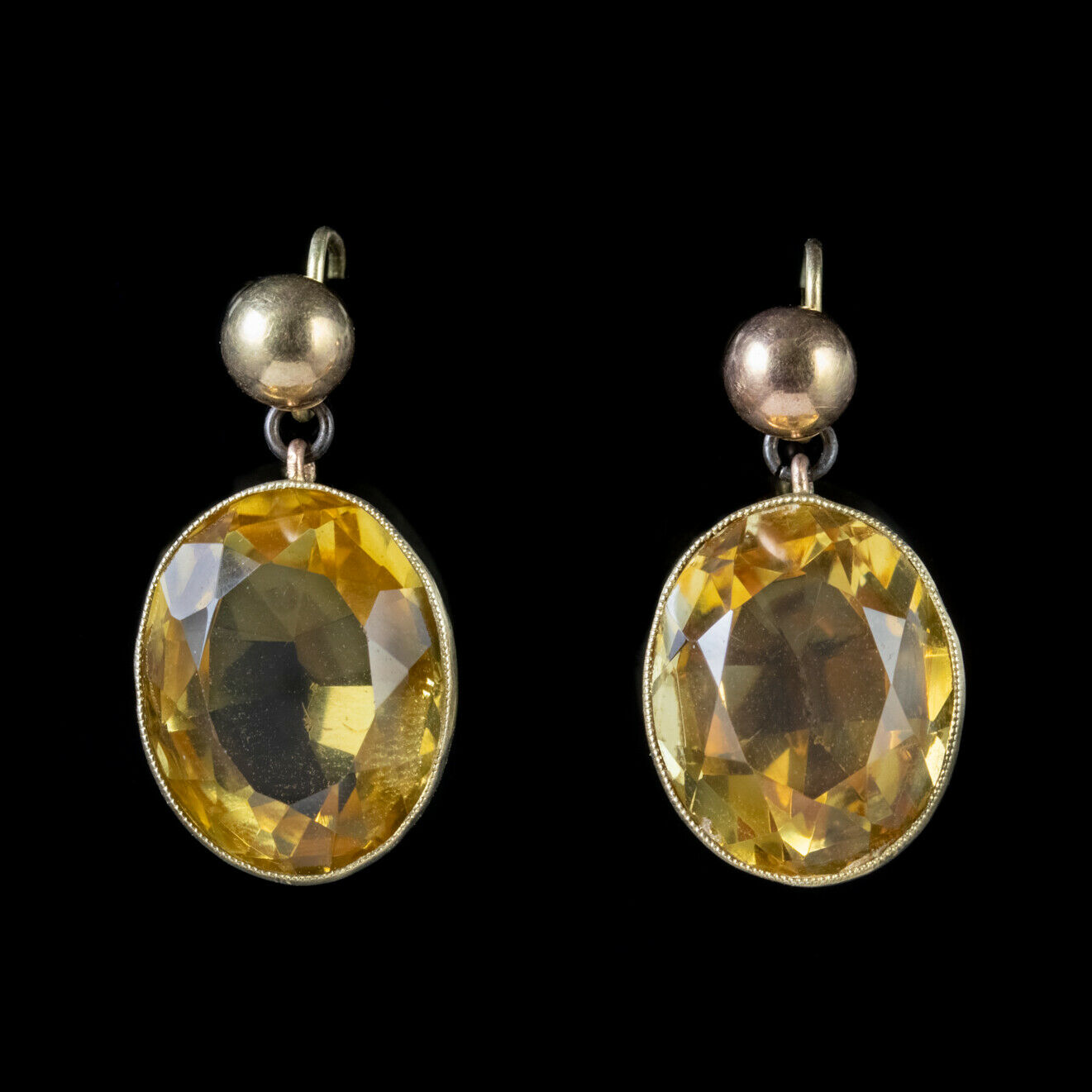 Antique Victorian Large Citrine Gold Earrings c.1900