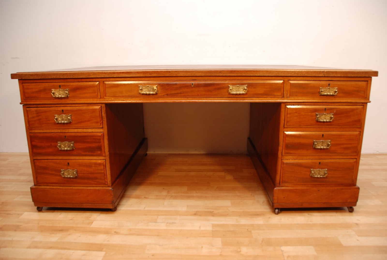 Antique Victorian Large Partners Walnut Writing Pedestal Desk