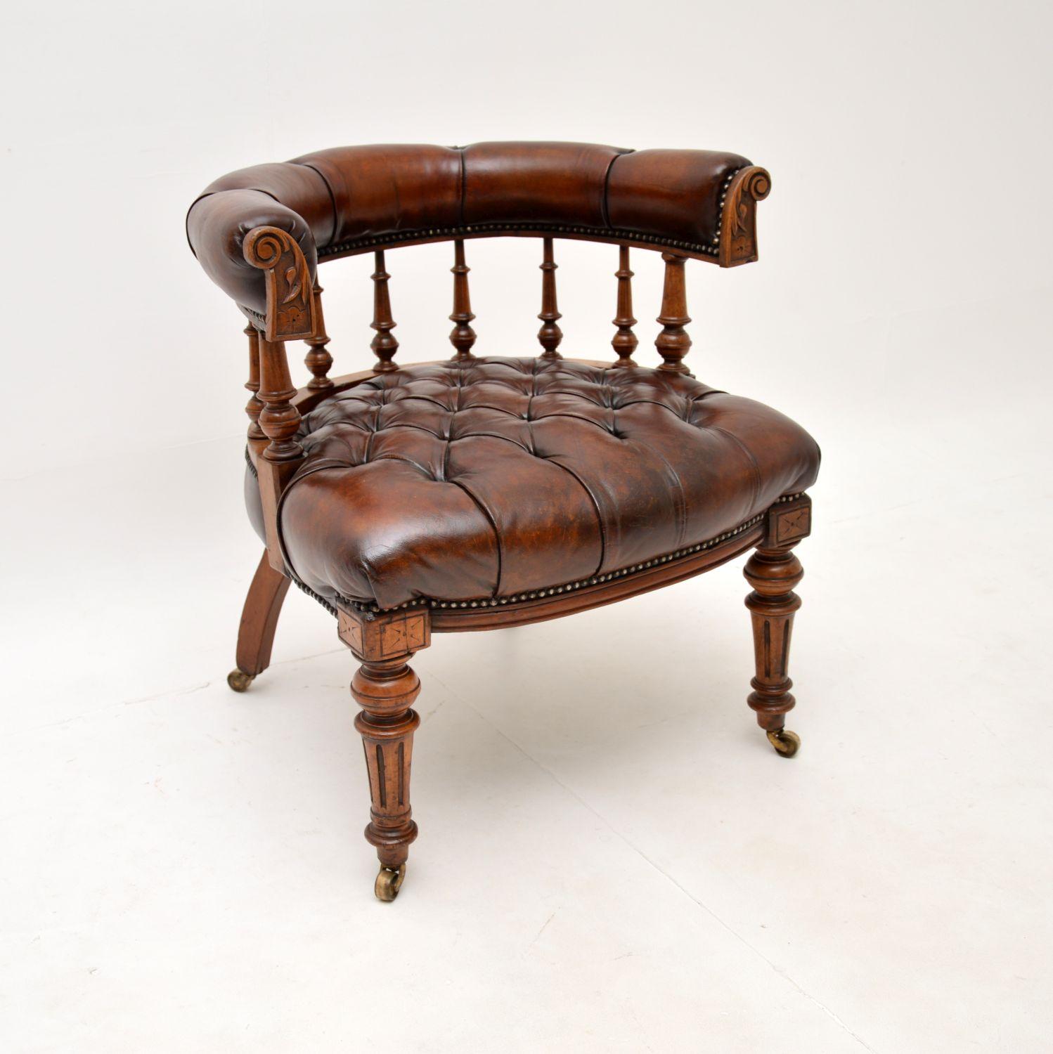 Antique Victorian Leather and Mahogany Desk Chair (1 of 12)