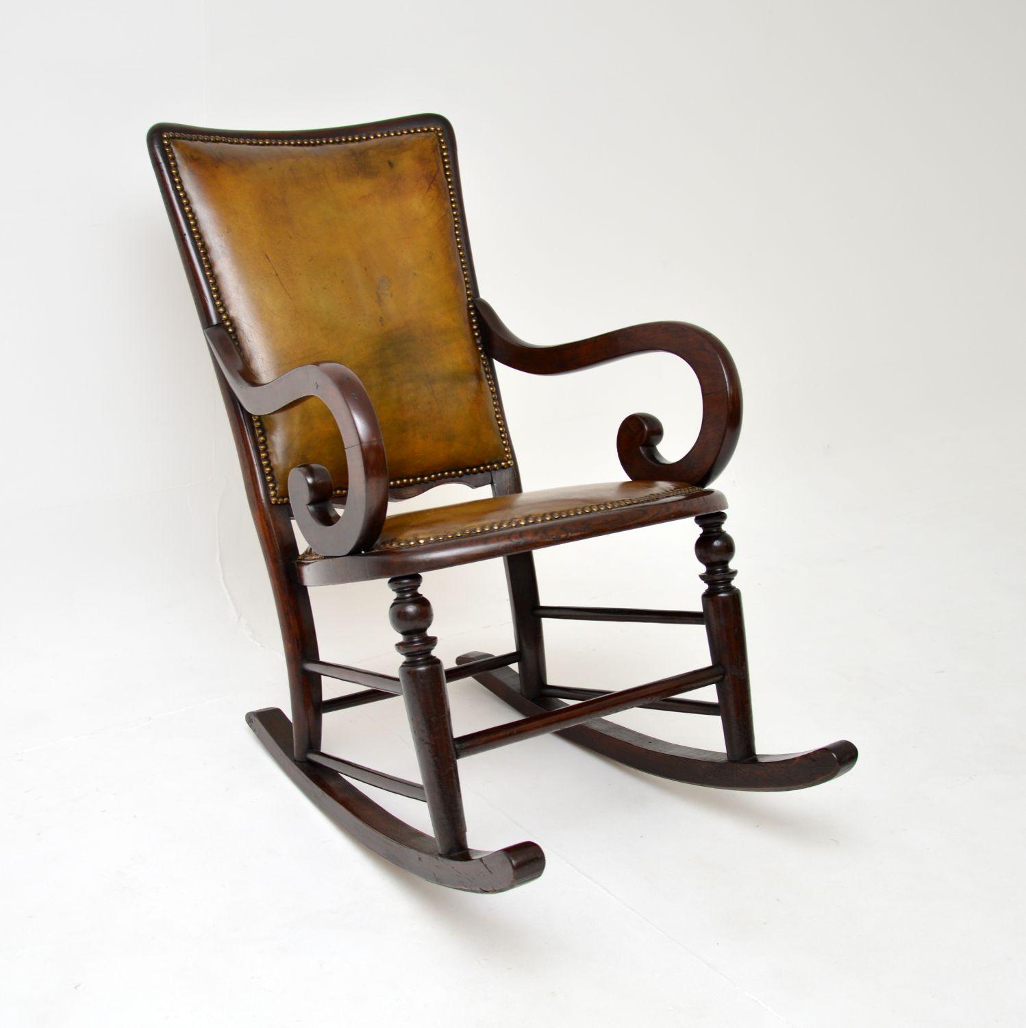 Antique Victorian Leather & Mahogany Rocking Chair