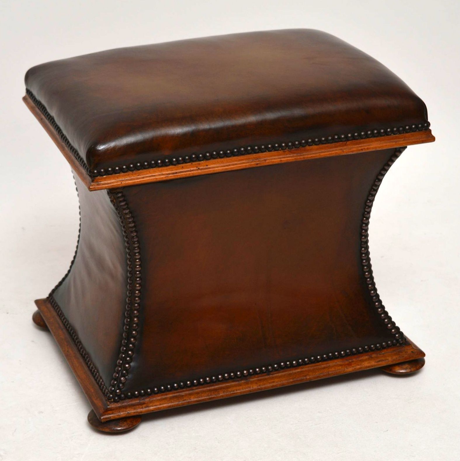 Antique Victorian Leather & Mahogany Trunk / Stool c.1840