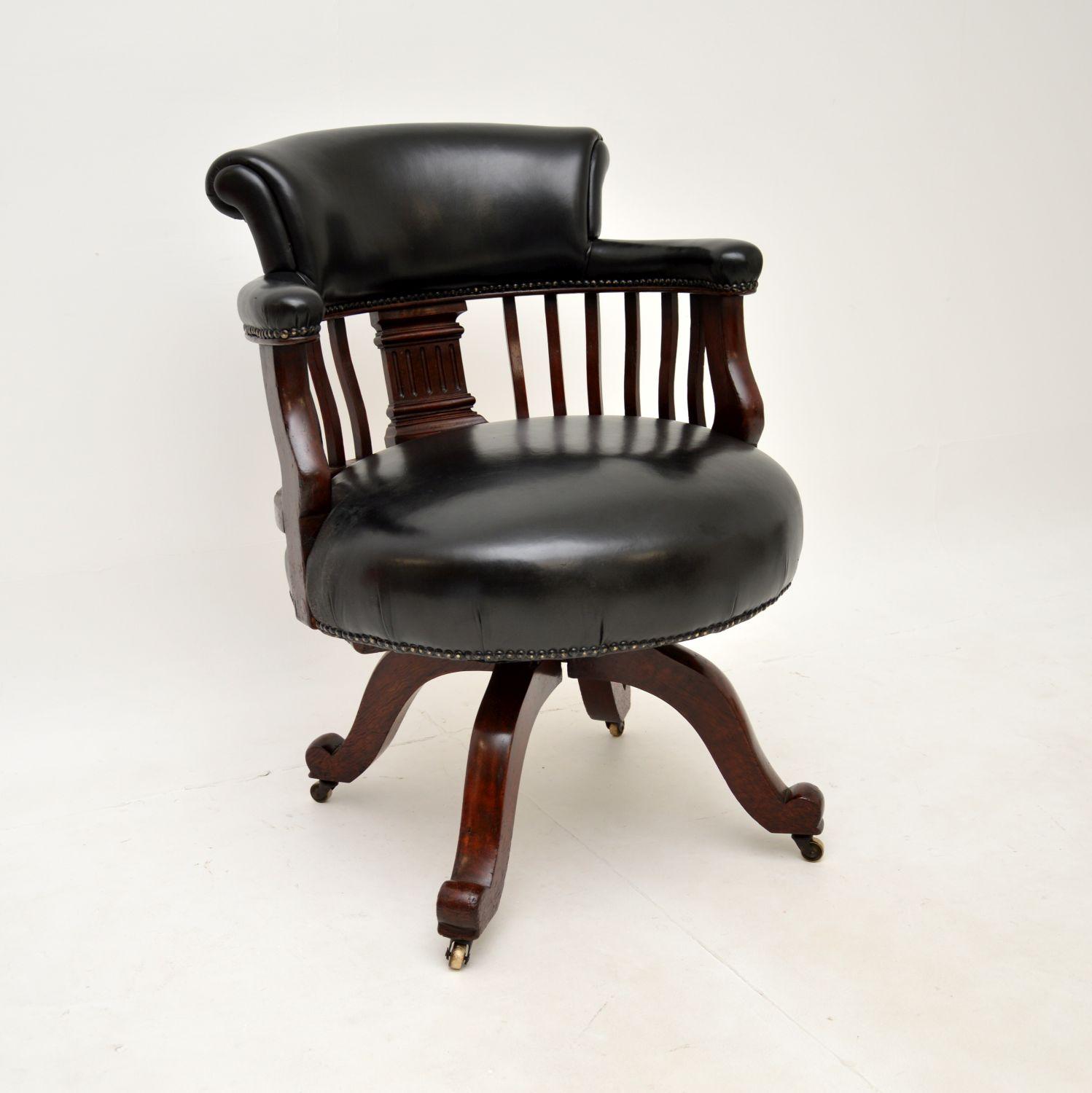 Antique Victorian Leather Swivel Desk Chair (1 of 10)