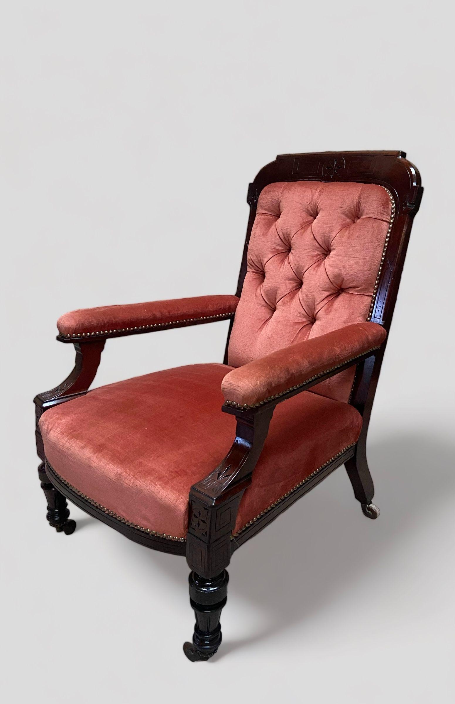 Antique Victorian Library Armchair / Mahogany Frame / 19th Century
