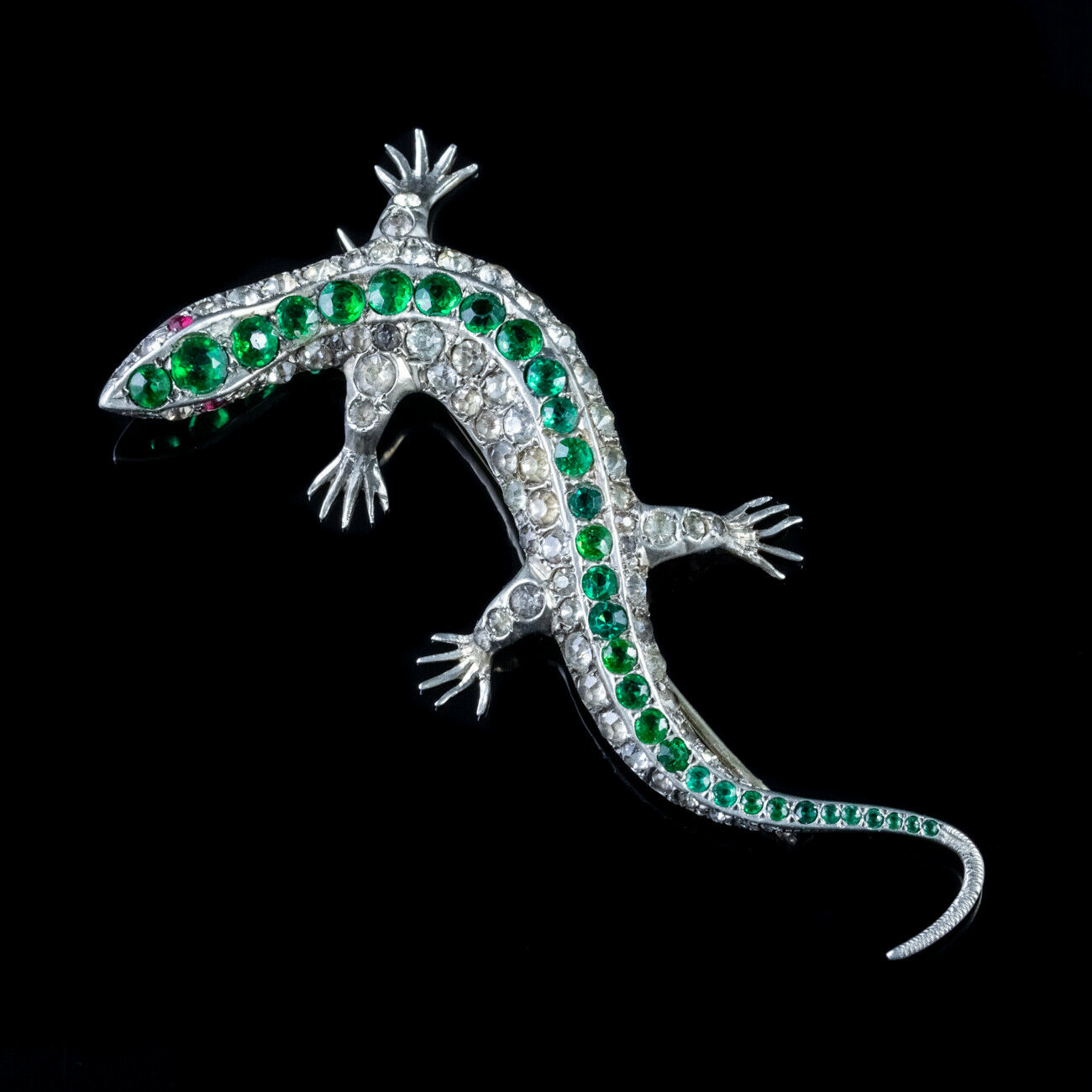 Antique Victorian Lizard Brooch Paste Sterling Silver c.1890