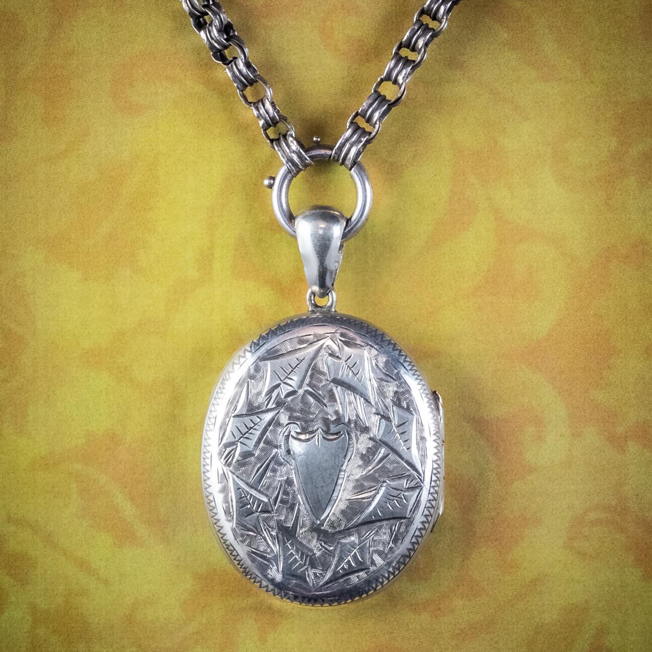 Antique Victorian Locket Collar Necklace Silver c.1880