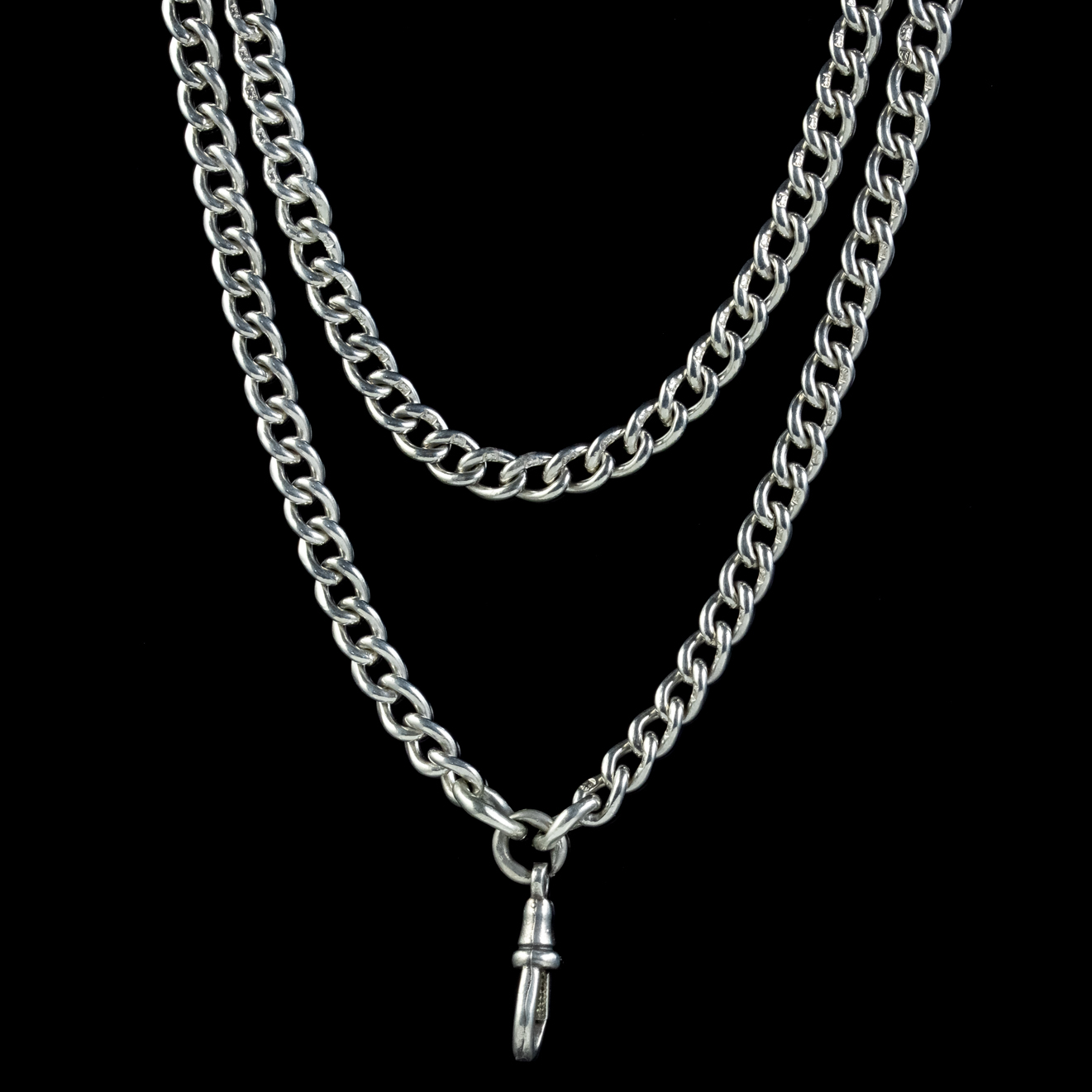 Antique Victorian Long Curb Guard Chain Sterling Silver circa 1900