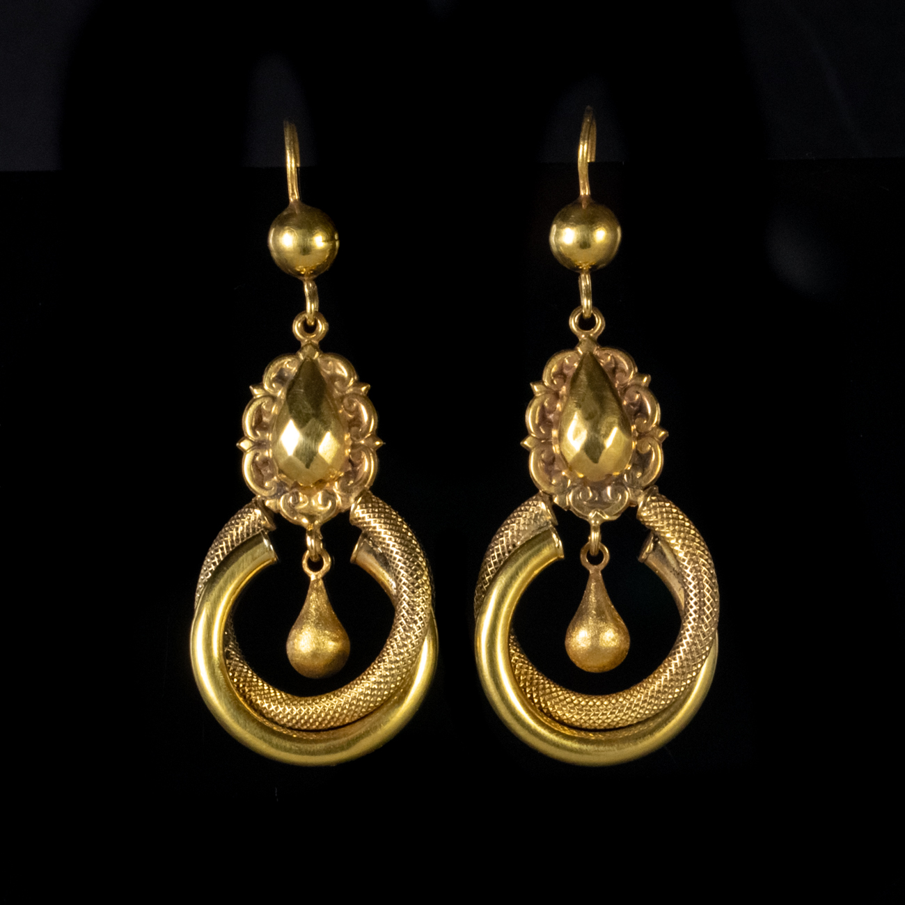 Antique Victorian Long Drop Earrings 15ct Yellow Gold c.1880