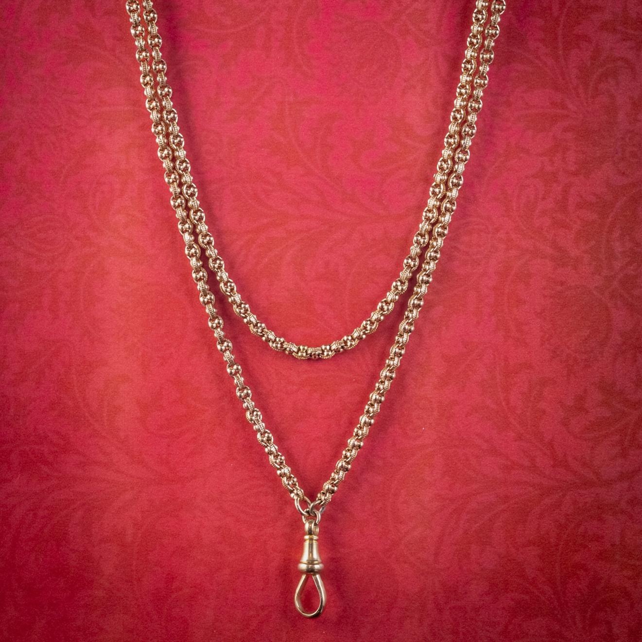 Antique Victorian Long Guard Chain Necklace 18ct Gold c.1880