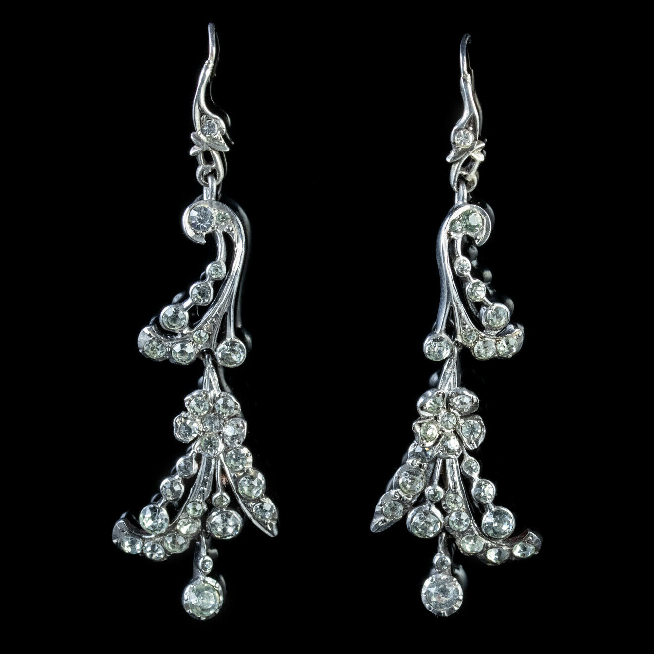 Antique Victorian Long Silver Paste Earrings c.1900