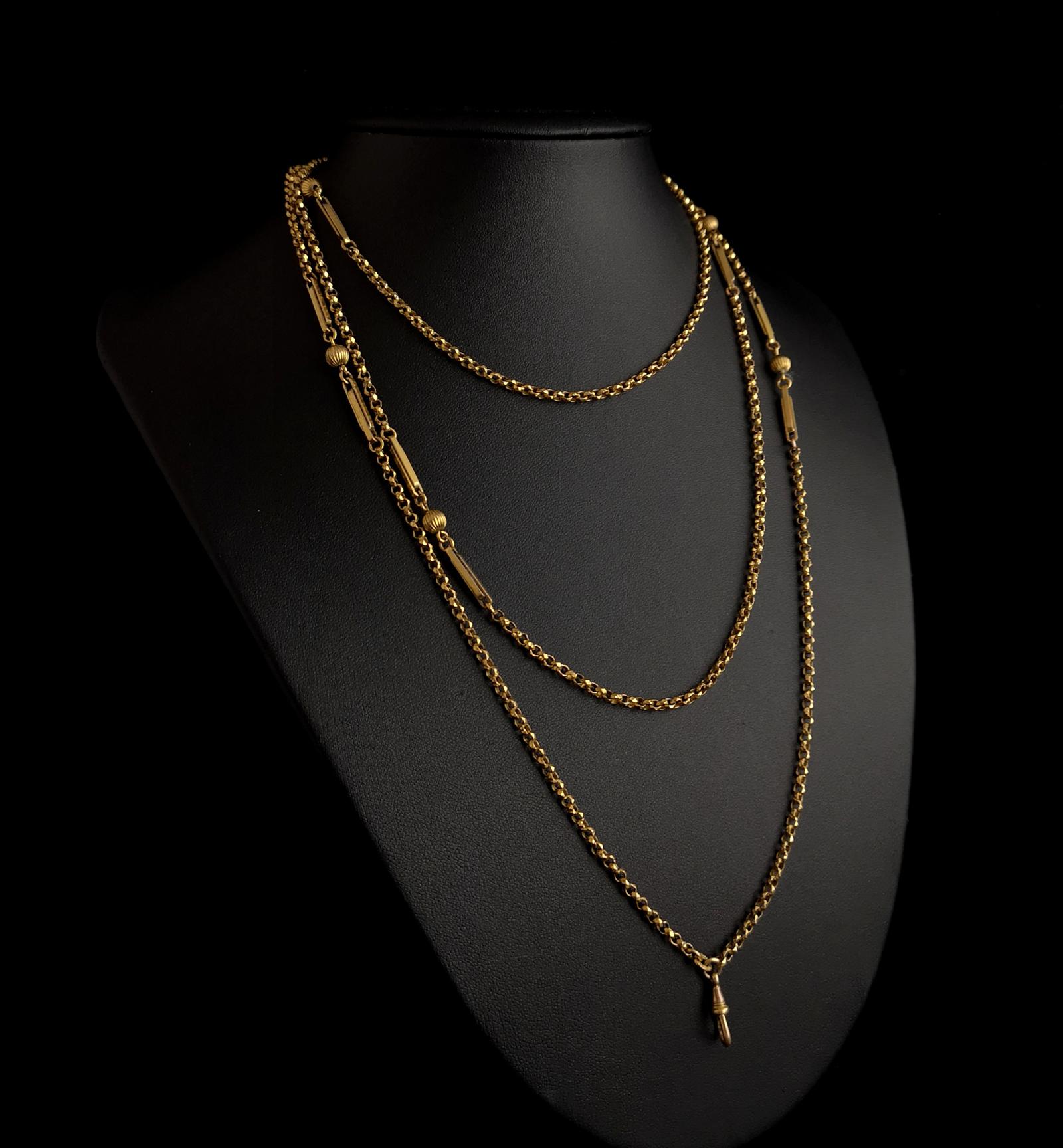 Antique Victorian Longuard Chain, Muff Chain Necklace