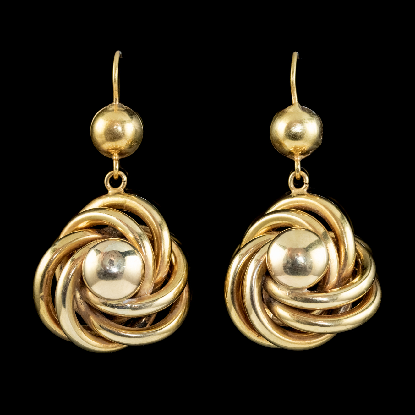 Antique Victorian Lovers Knot Drop Earrings 18ct Gold c.1890
