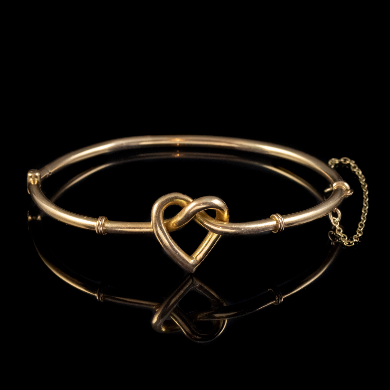 Antique Victorian Lovers Knot Heart Bangle 15ct Gold c.1880