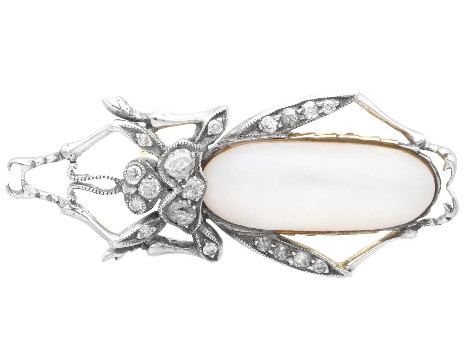 Antique Victorian Mabe Pearl & 0.36ct Diamond, 15ct Yellow Gold Beetle Brooch (1 of 9)