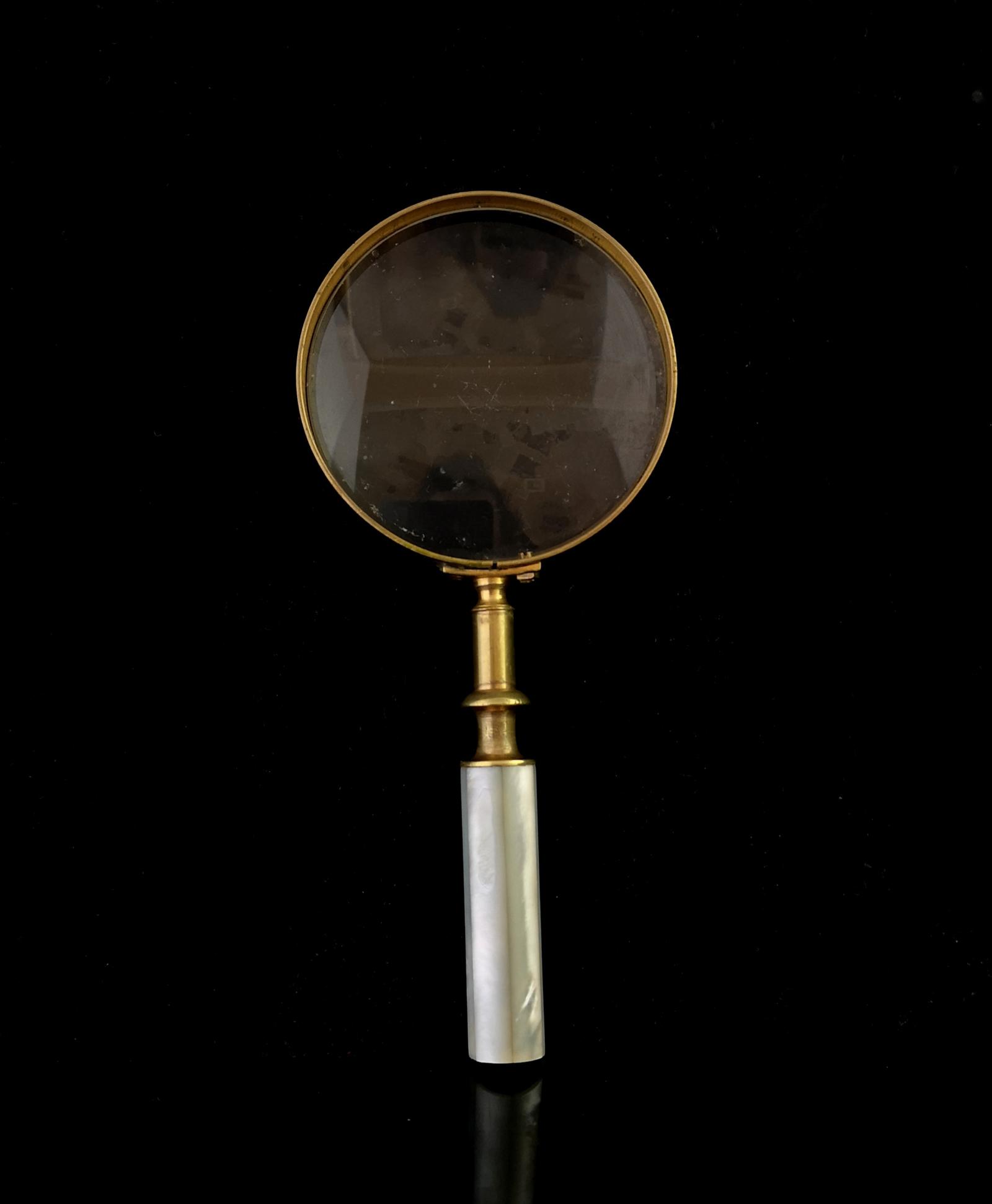 Antique Victorian Magnifying Glass, Cased, Mother of Pearl