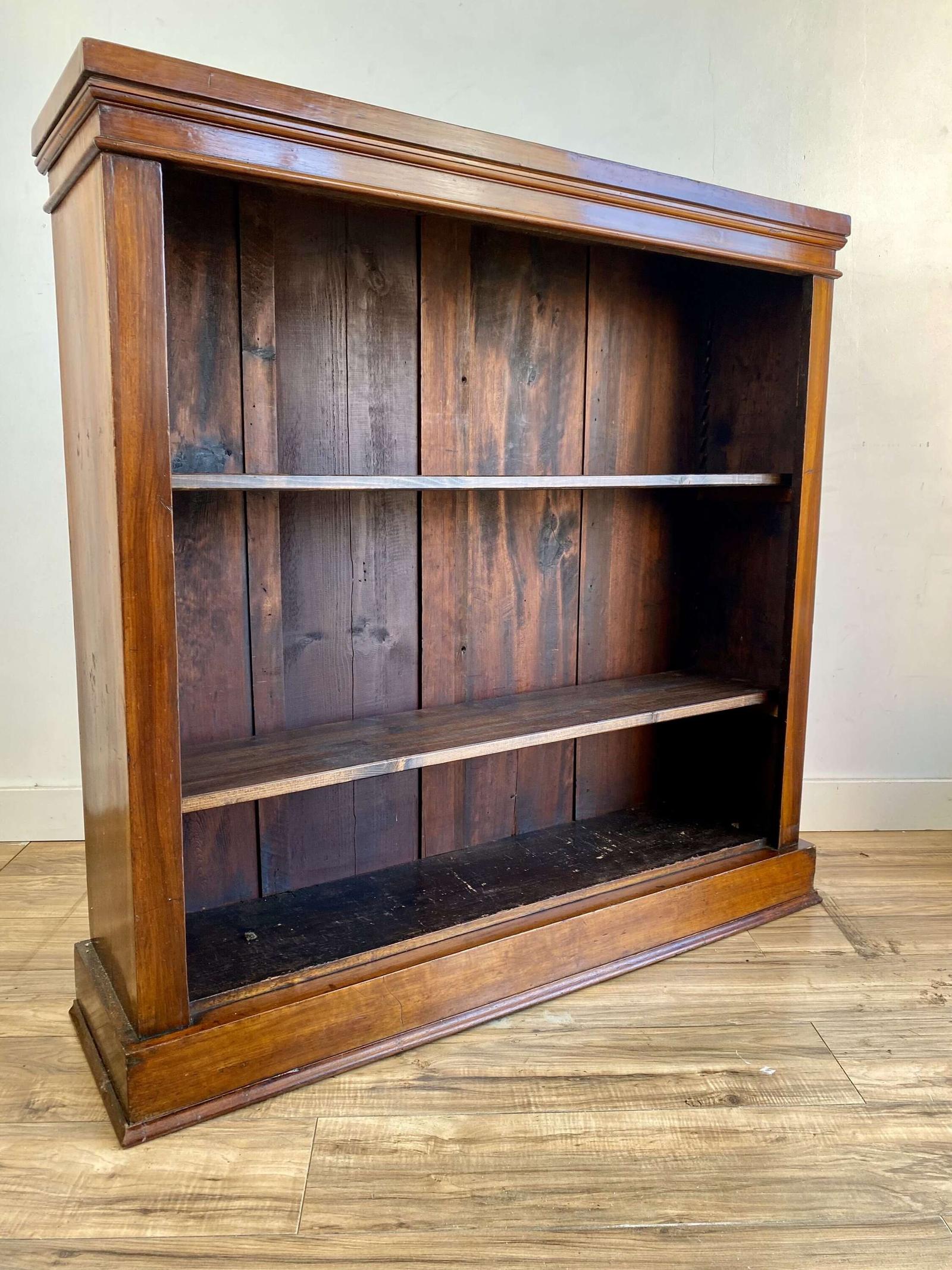 Antique Victorian Mahogany Bookcase with Walnut Veneer & Adjustable Shelves – Circa 1880