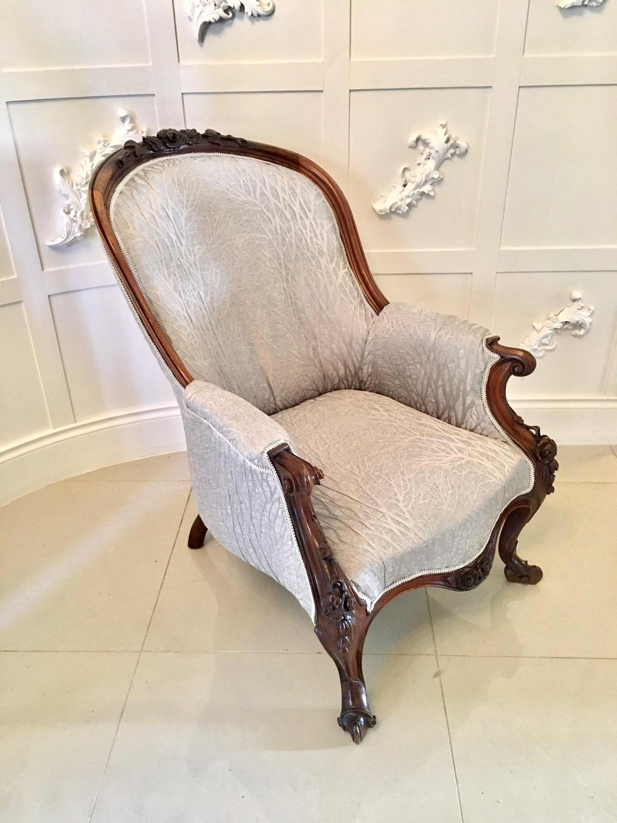 Antique Victorian Mahogany Carved Library Chair (1 of 15)