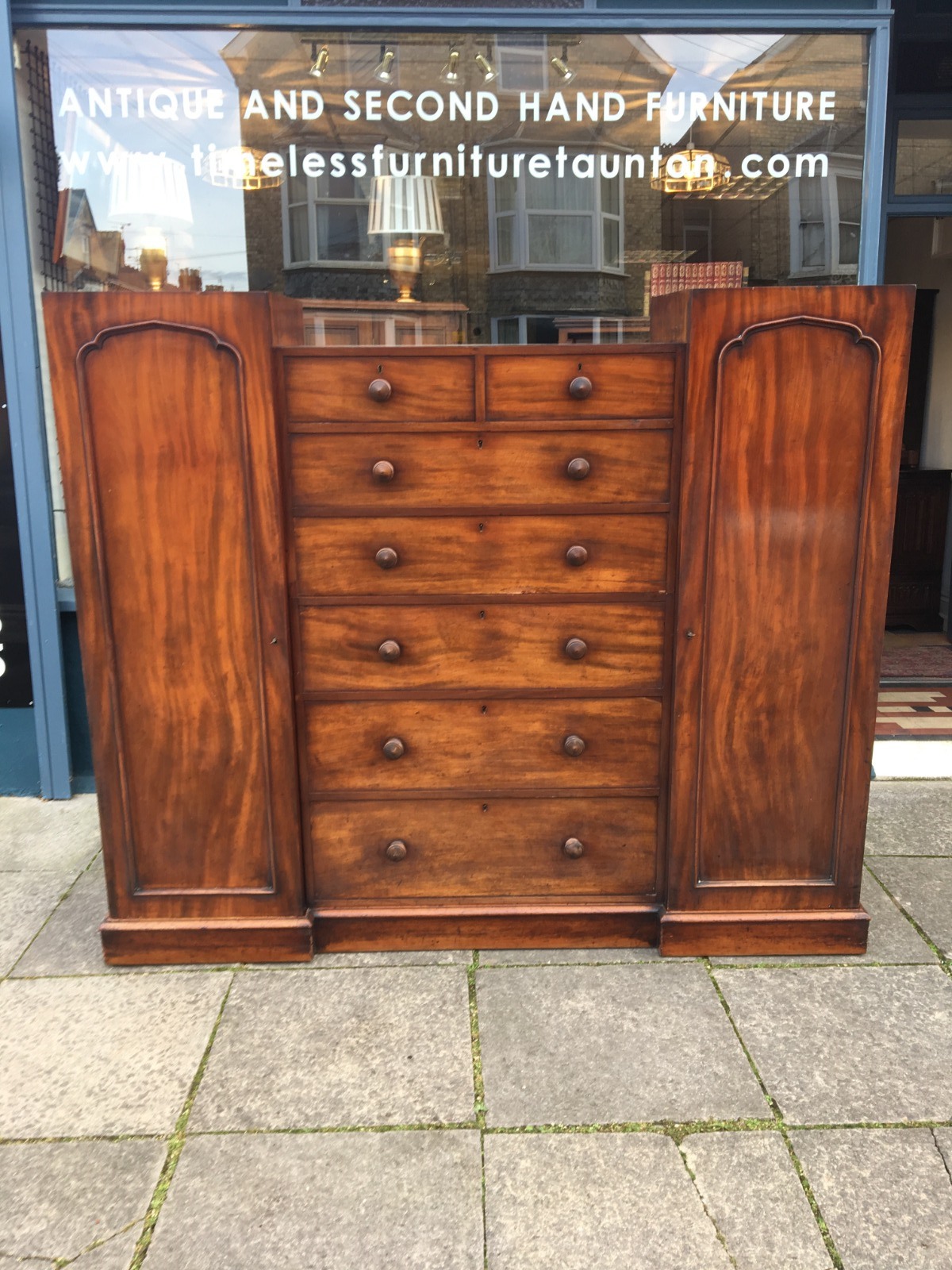 Antique Victorian Mahogany Compactum - Wardrobe 2 Doors - 7 Drawers