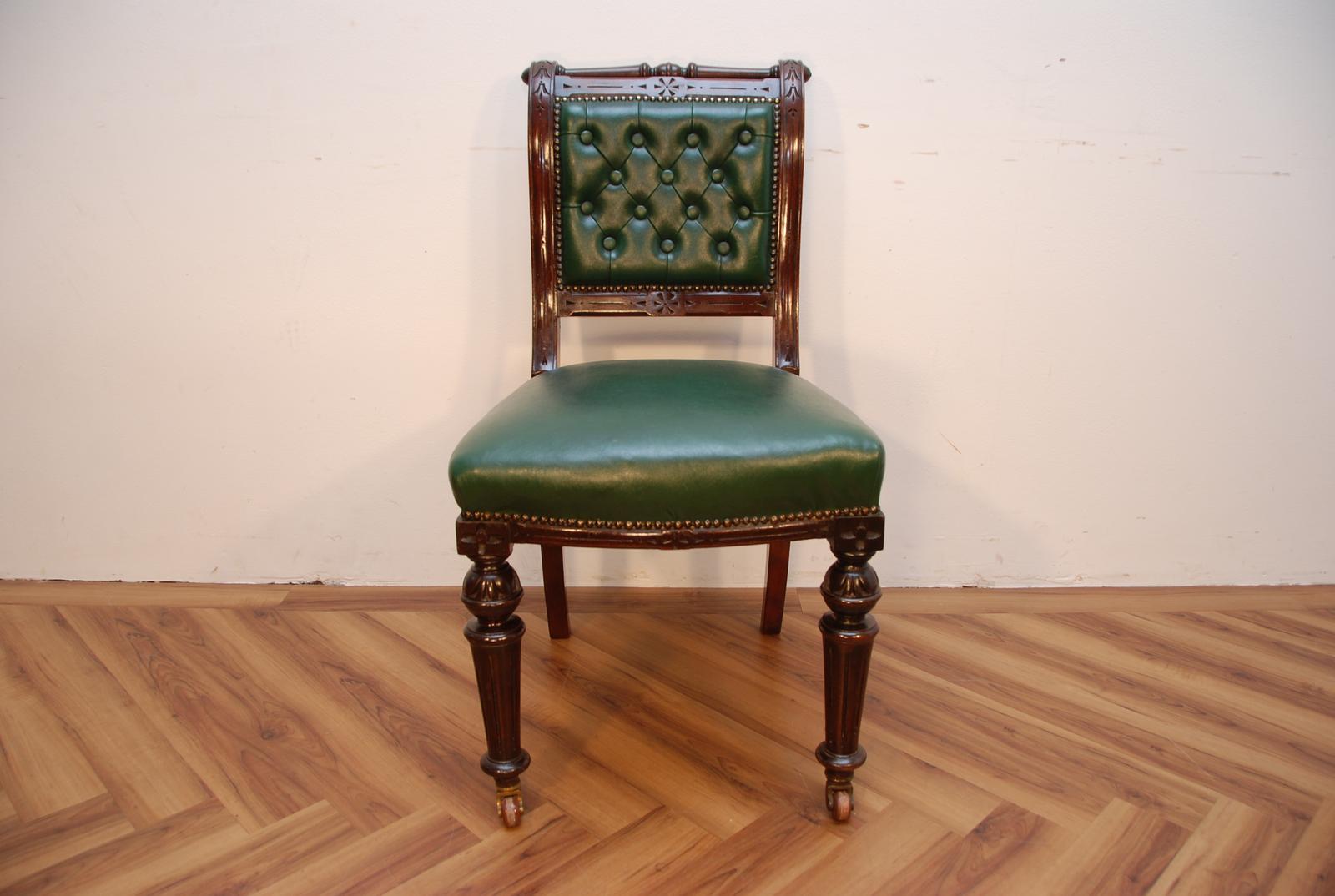 Antique Victorian Mahogany Desk Office Chair Green Leather