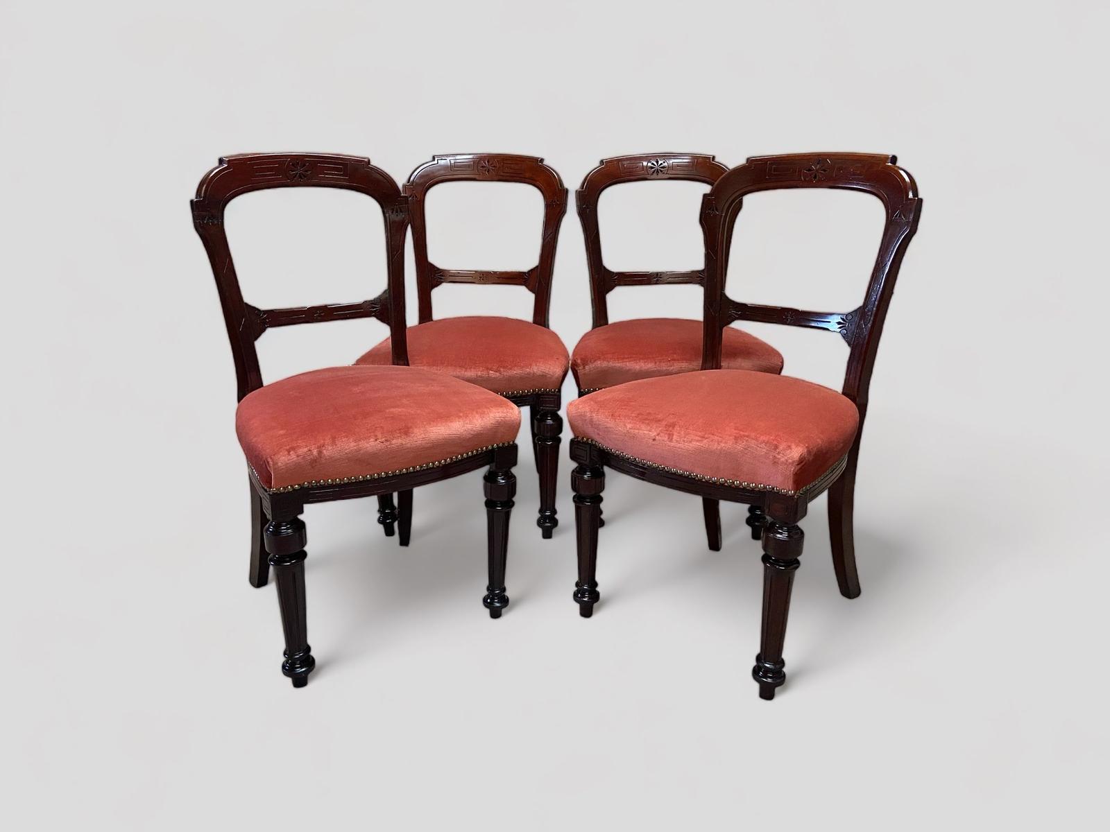 Antique Victorian Mahogany Dining Chairs / Set of 4 / 19th Century