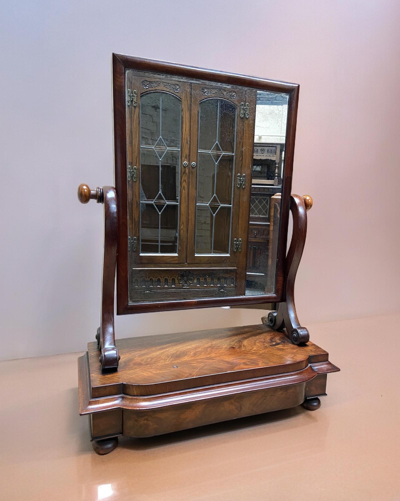 Antique Victorian Mahogany Dressing Table Mirror with Drawer / Free-standing Toilet Mirror