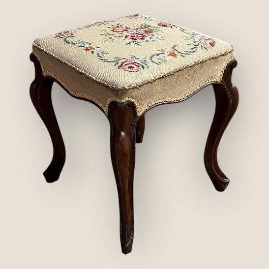 Antique Victorian Mahogany & Floral Needlework Square Foot Stool Cabriole Legs