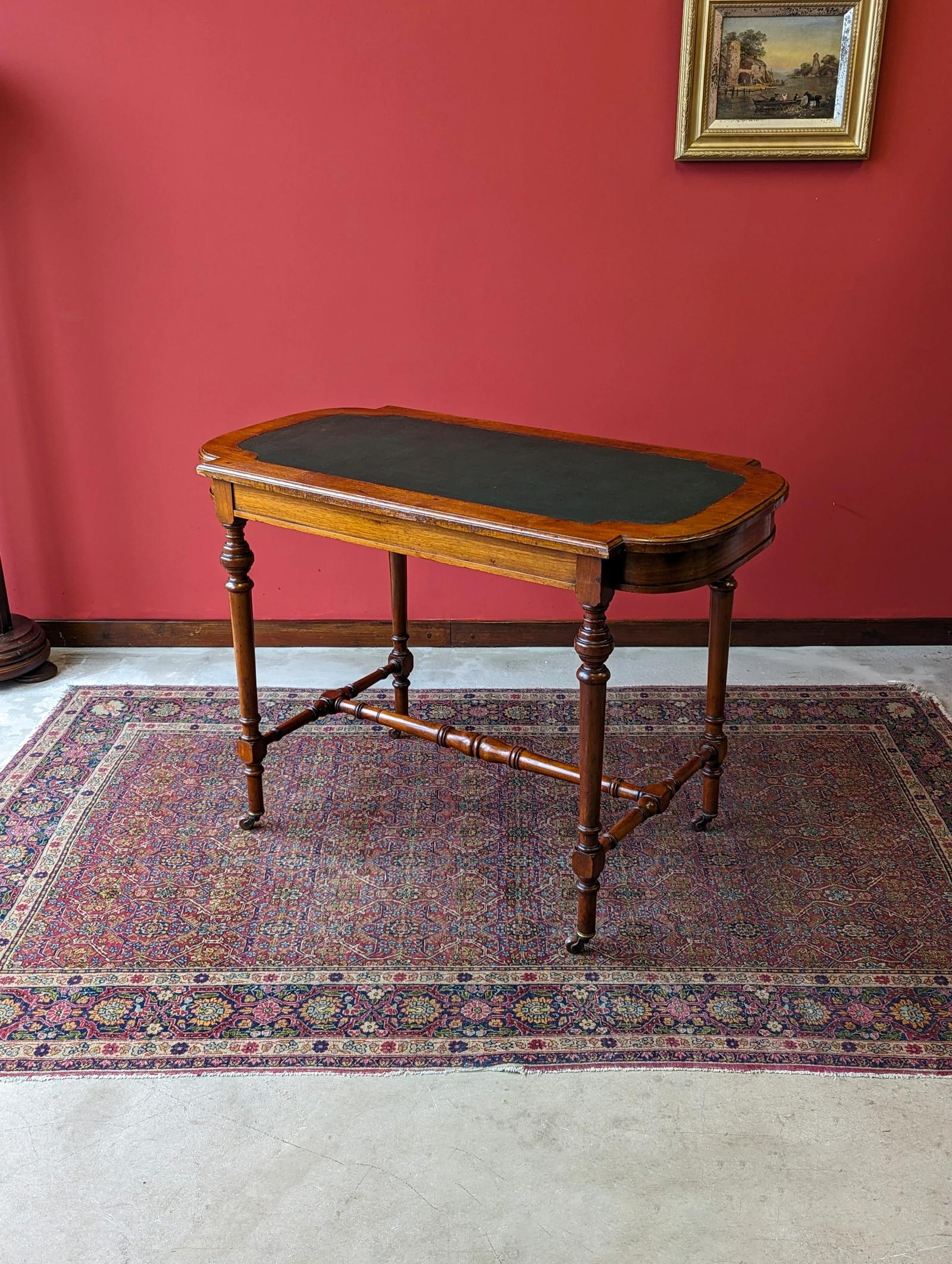 Antique Victorian Mahogany Green Leather Topped Library Table Desk