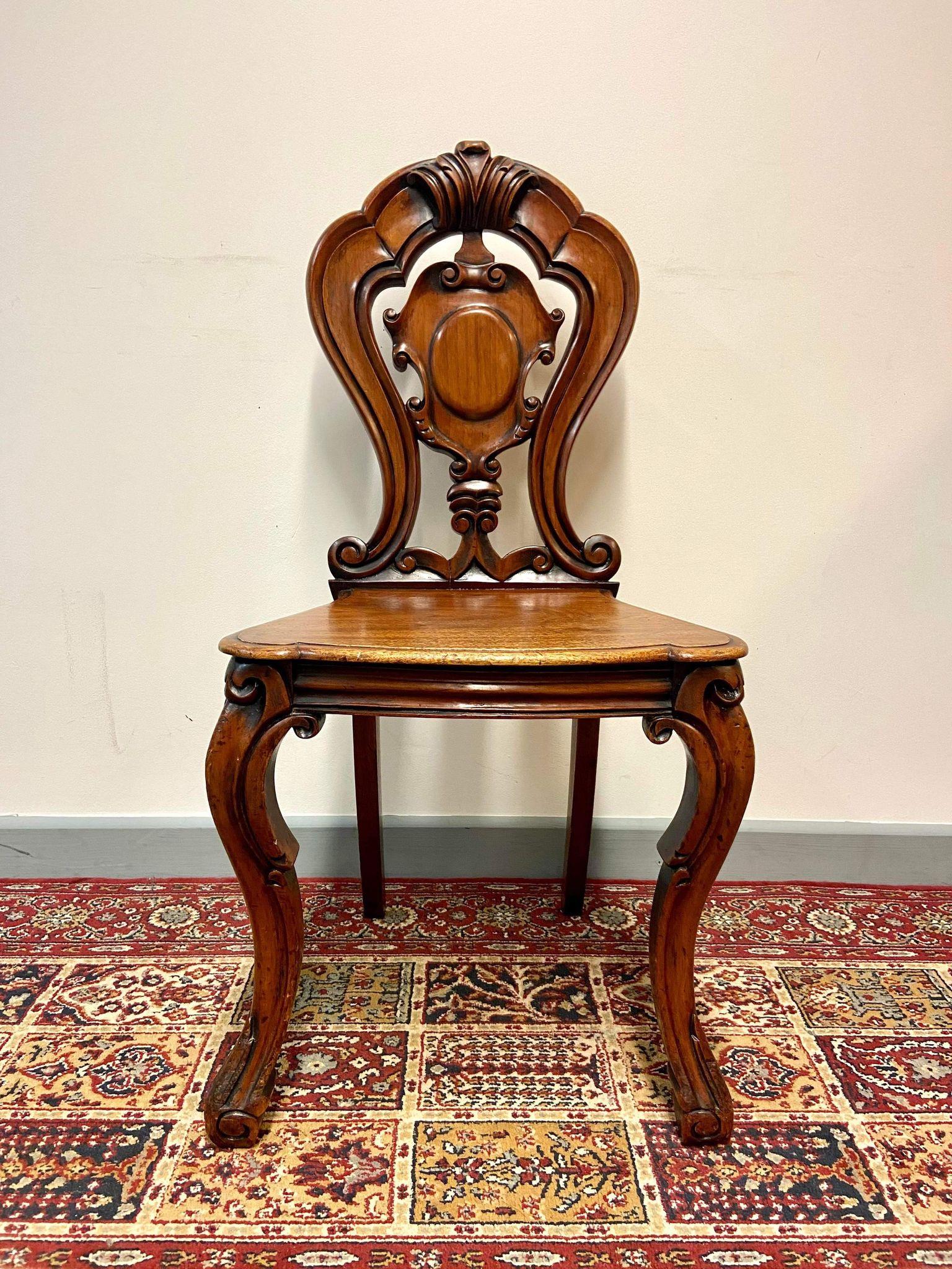 Antique Victorian Mahogany Hall Chair / Manufacture c. 1850 / Made in England