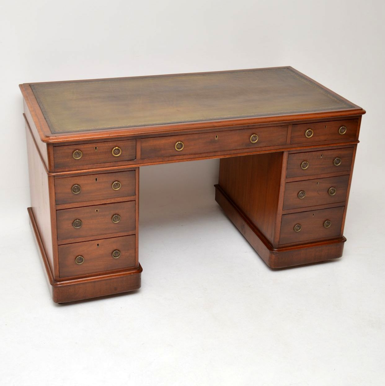 Antique Victorian Mahogany & Leather Pedestal Desk