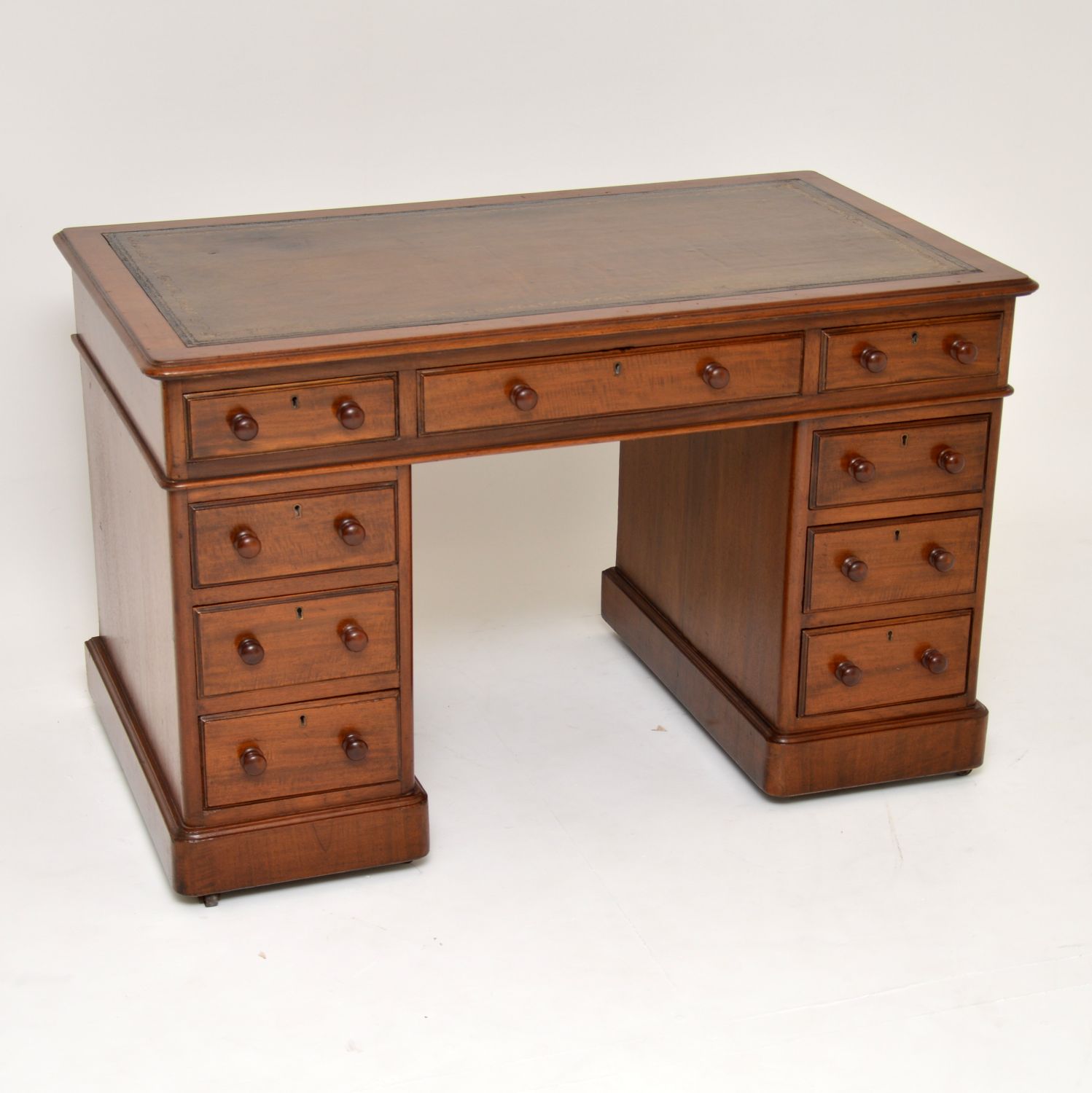 Antique Victorian Mahogany Leather Top Pedestal Desk (1 of 10)