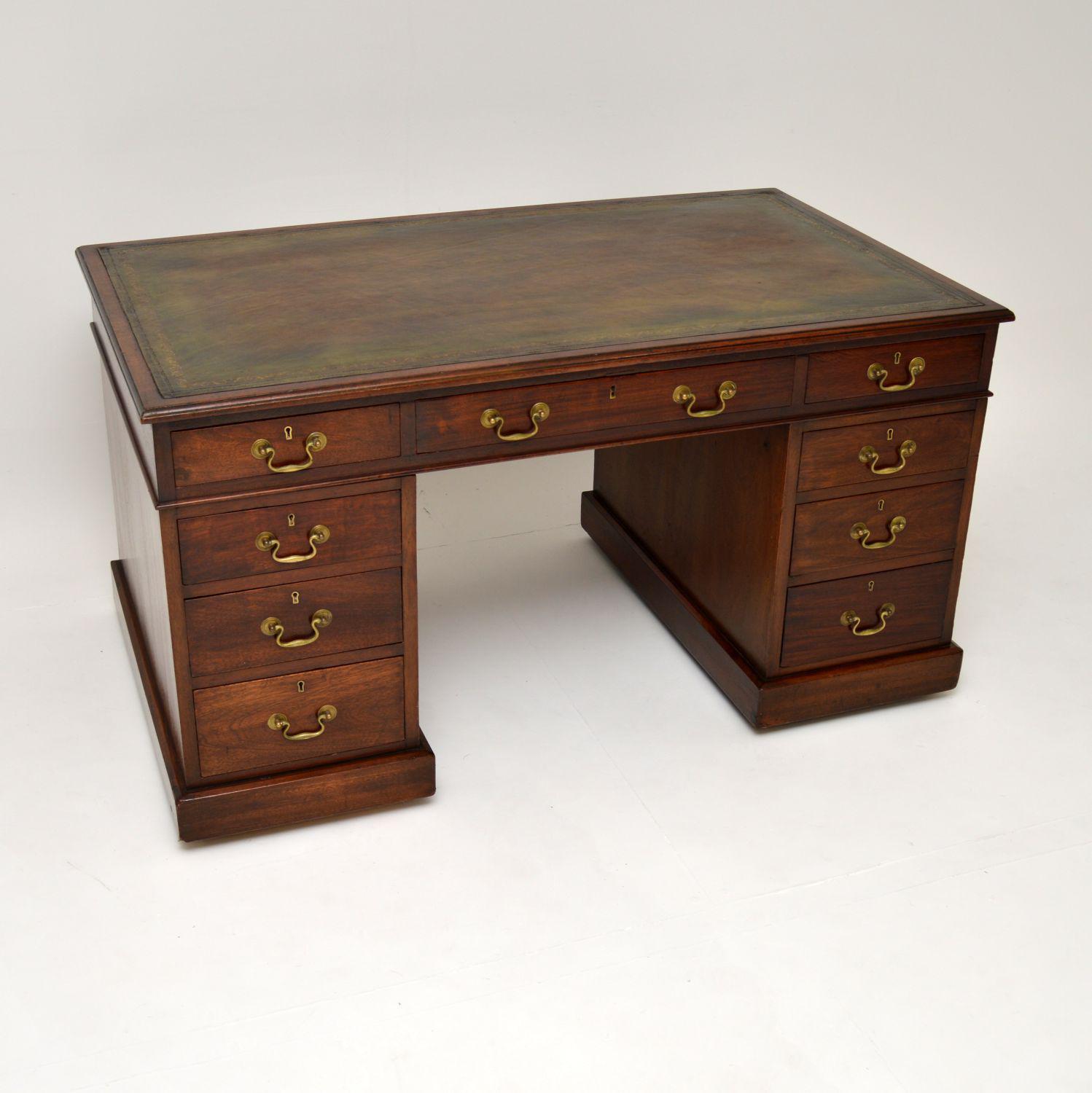 Antique  Victorian Mahogany Leather Top Pedestal Desk (1 of 12)