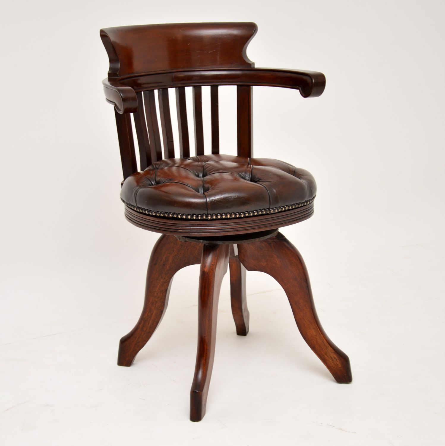 Antique Victorian Mahogany Leather Upholstered Swivel Desk Chair
