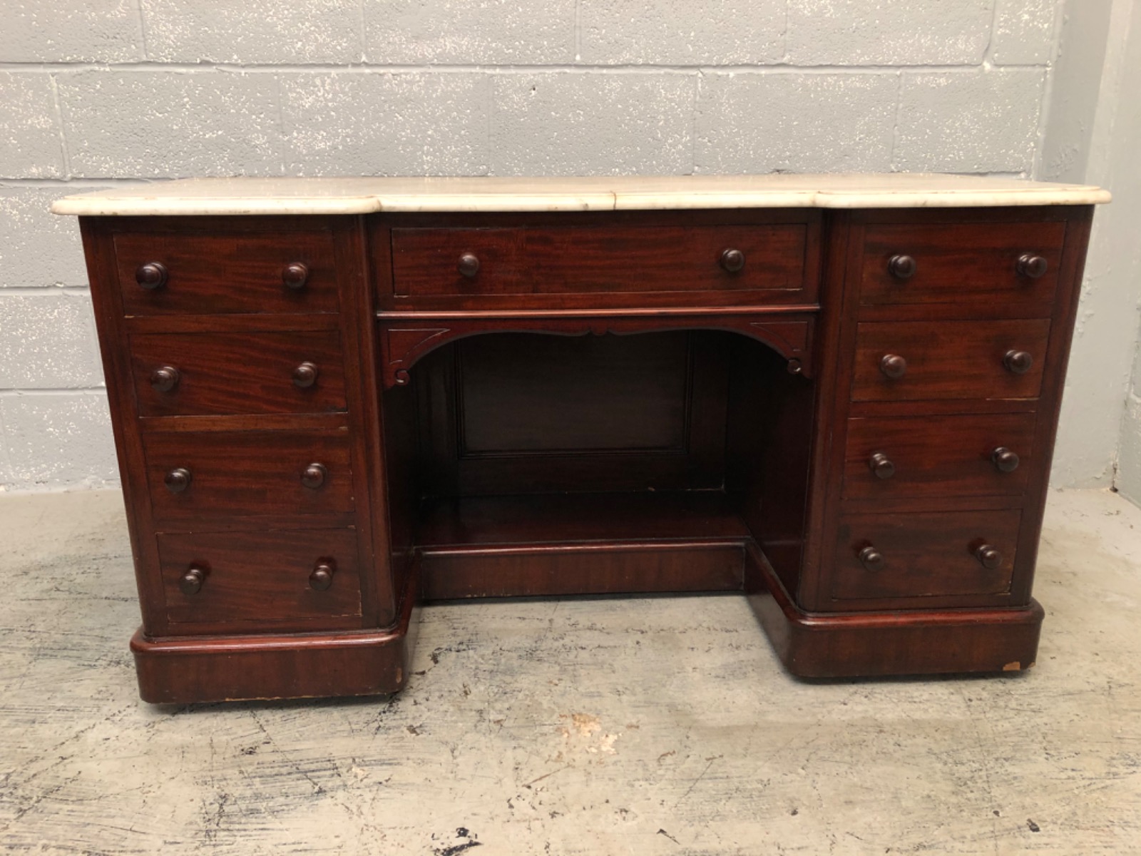 Antique Victorian Mahogany Marble Top Knee Hole Desk