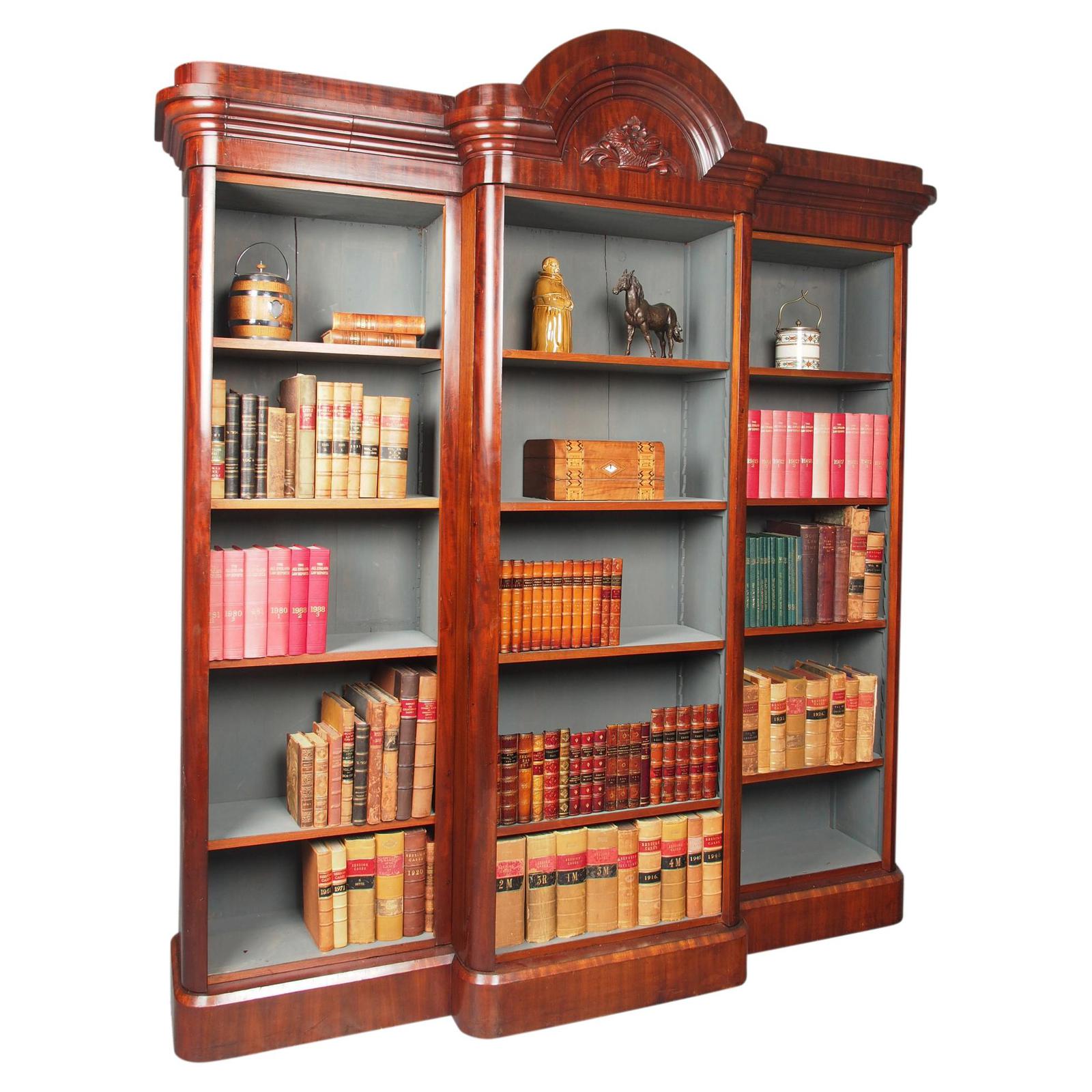 Antique Victorian Mahogany Open Breakfront Bookcase