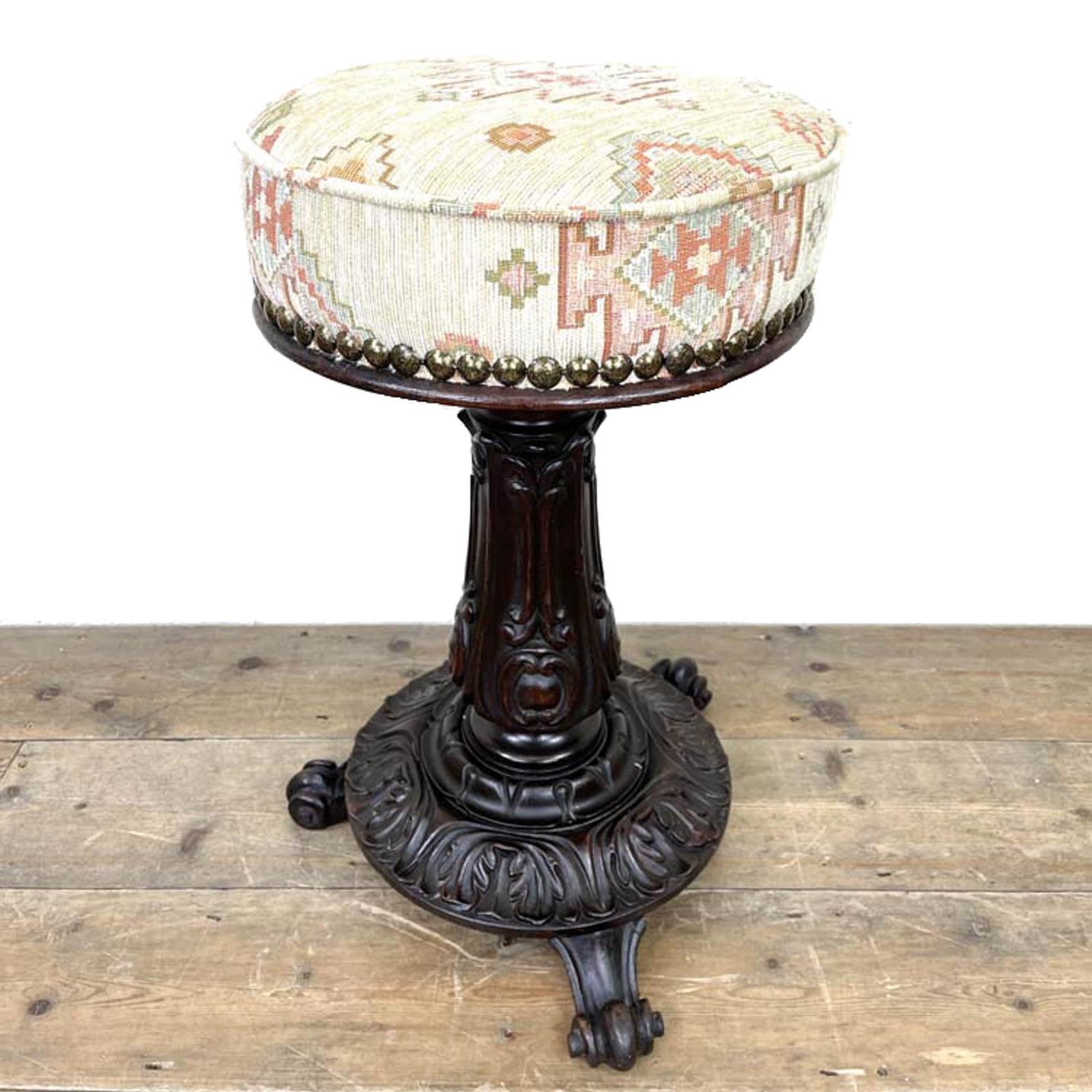 Antique Victorian Mahogany Piano Stool